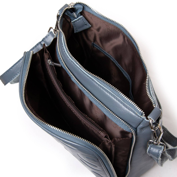Женская компактная сумочка Alex Rai. Изготовлена из натуральной мягкой кожи. Два отделения закрываются на молнии. Внутри центрального отделения находится открытый карман и боковой карман на молнии. На обратной стороне есть дополнительное двойное отделение. На фасаде расположен большой карман на молнии.
