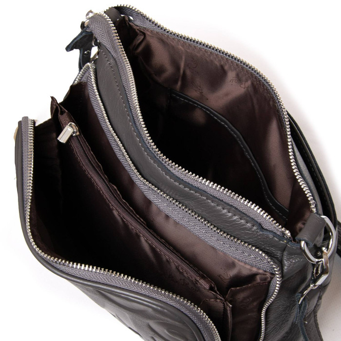 Женская компактная сумочка Alex Rai. Изготовлена из натуральной мягкой кожи. Два отделения закрываются на молнии. Внутри центрального отделения находится открытый карман и боковой карман на молнии. На обратной стороне есть дополнительное двойное отделение. На фасаде расположен большой карман на молнии.