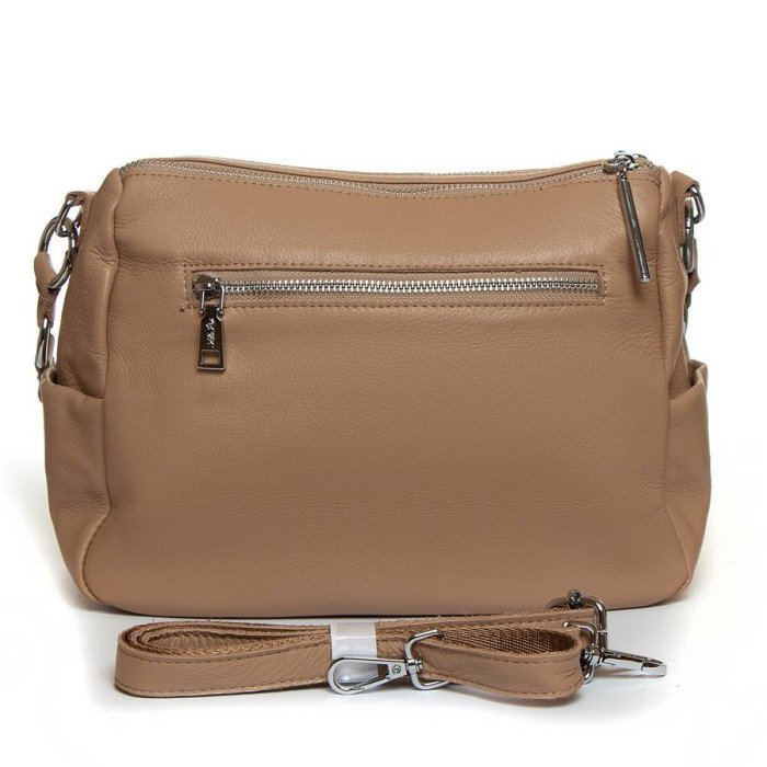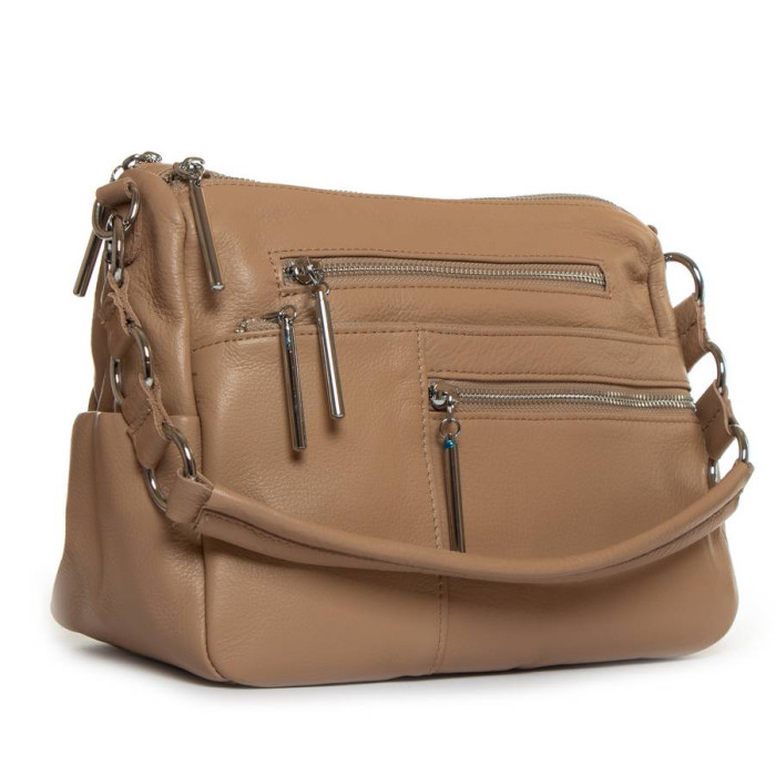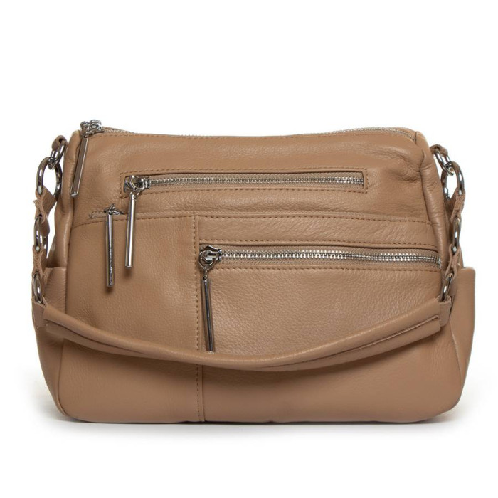 Женская кожаная сумка Alex Rai. Изготовлена из натуральной мягкой кожи. Два отделения, закрываются на молнии. Внутри отделений находятся боковой открытый карман и карман на молнии. Снаружи сумки, на фасаде расположены четыре кармана на молнии и на фасаде один карман. На торцах сумки есть небольшие открытые карманы. Уплотненное дно.