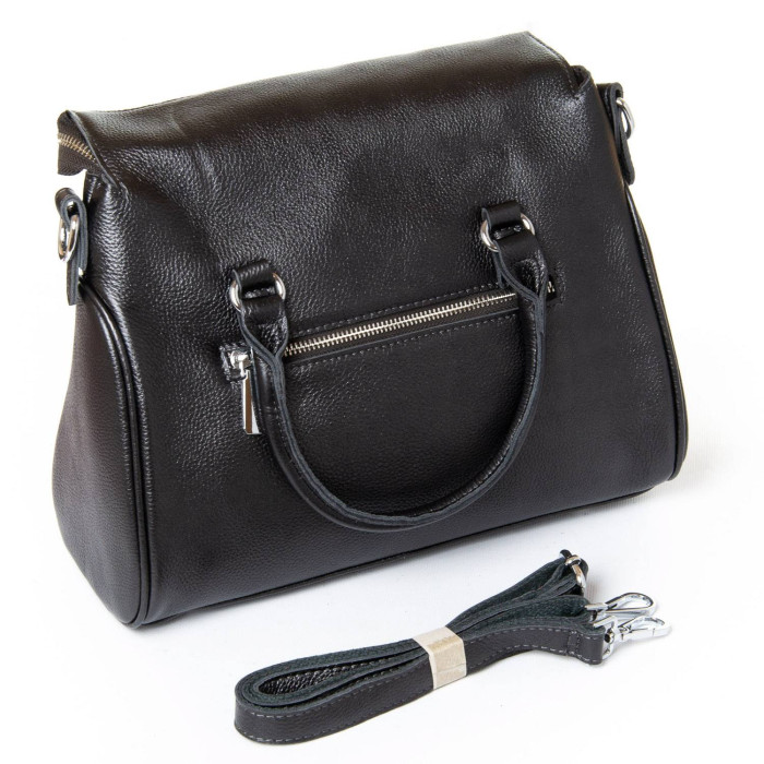 Женская сумка. Изготовлена из натуральной мягкой кожи. Закрывается на молнию. Внутри находится двойное отделение, разделенное карманом-перегородкой на молнии, открытый карман и боковой карман на молнии. На обратной стороне находится карман на молнии. В комплекте регулируемый плечевой ремень и широкий ремень.