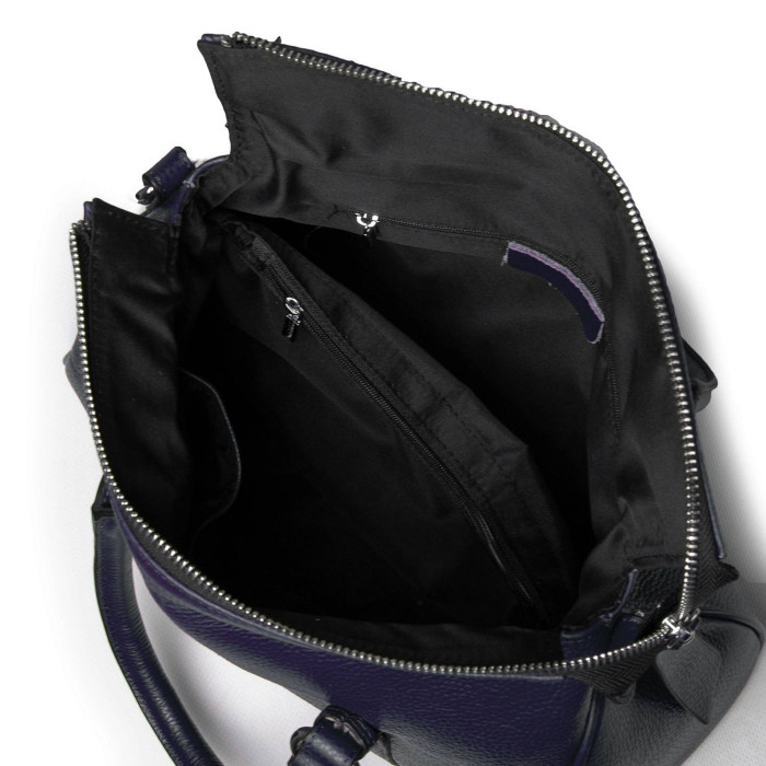Женская сумка. Изготовлена из натуральной мягкой кожи. Закрывается на молнию. Внутри находится двойное отделение, разделенное карманом-перегородкой на молнии, открытый карман и боковой карман на молнии. На обратной стороне находится карман на молнии. В комплекте регулируемый плечевой ремень и широкий ремень.