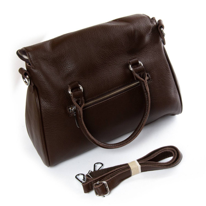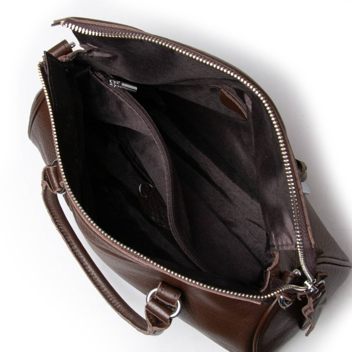 Женская сумка. Изготовлена из натуральной мягкой кожи. Закрывается на молнию. Внутри находится двойное отделение, разделенное карманом-перегородкой на молнии, открытый карман и боковой карман на молнии. На обратной стороне находится карман на молнии. В комплекте регулируемый плечевой ремень и широкий ремень.