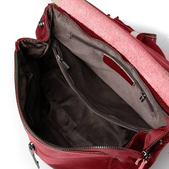 Женский кожаный рюкзак Alex Rai. Изготовлен из натуральной плотной кожи.. Можно носить на плече на регулируемом ремне. Под клапаном дополнительно закрывается на молнию. Внутри находится основное и дополнительное отделение, разделенное карманом-перегородкой на молнии, двойной открытый карман и карман на молнии. Снаружи рюкзака на фасаде и обратной стороне расположены карманы на молнии. Плечевые лямки регулируются по длине.