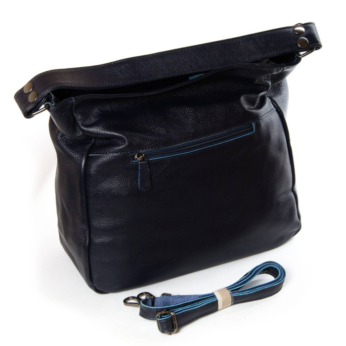 Женская сумка. Изготовлена из натуральной мягкой кожи. Закрывается на молнию. Внутри находится большое отделение, открытый карман и боковой карман на молнии. На обратной стороне находится карман на молнии. В комплекте регулируемый плечевой ремень.