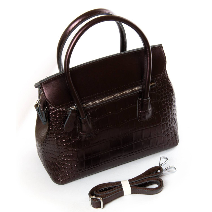 Женская сумка из плотной натуральной кожи. Клапан закрывается на магнитный замок. Внетри находится двойное отделение разделенное карманом-перегородкой на молнии, двойной открытый карман и карман на молнии. Снаружи сумки, на обратной стороне расположен карман на молнии. В комплекте регулируемый плечевой ремень.