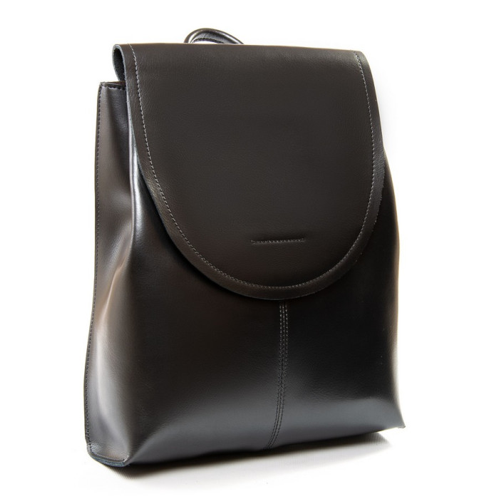 Женский кожаный рюкзак. Изготовлен из натуральной плотной кожи. Можно носить на плече на регулируемом ремне. Под клапаном дополнительно закрывается на молнию. Внутри находится основное и дополнительное отделение, разделенное карманом-перегородкой на молнии, открытый карман и карман на молнии. Снаружи рюкзака на обратной стороне расположен карман на молнии. Плечевые лямки регулируются по длине.