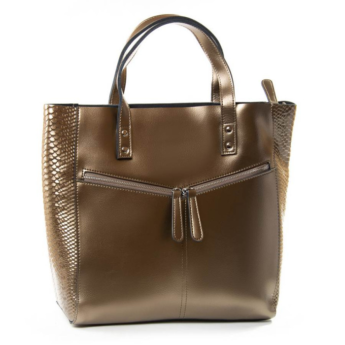 Женская сумка из натуральной кожи. Закрывается на молнию. Внутри сумки двойное отделение, разделенное карманом-перегородкой на молнии, боковой карман на молнии и открытый двойной карман. На обратной стороне сумки карман на молнии. На фасаде два кармашка на молнии. В комплекте регулируемый плечевой ремень.