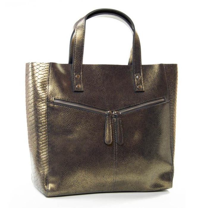 Женская сумка из натуральной кожи. Закрывается на молнию. Внутри сумки двойное отделение, разделенное карманом-перегородкой на молнии, боковой карман на молнии и открытый двойной карман. На обратной стороне сумки карман на молнии. На фасаде два кармашка на молнии. В комплекте регулируемый плечевой ремень.