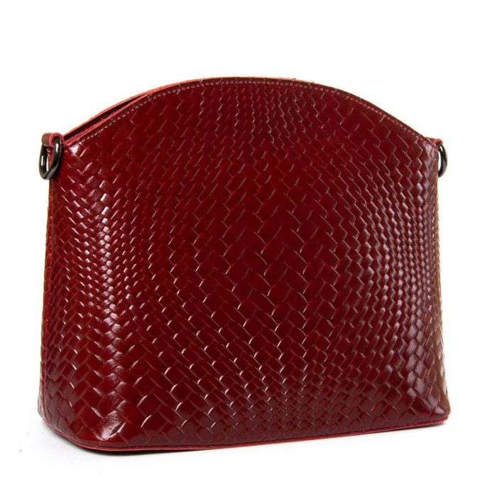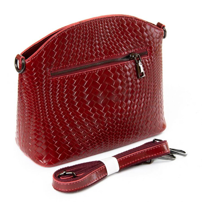 Женская сумочка. Изготовлена из натуральной плотной кожи. Закрывается на молнию. Внутри находится двойное отделение, разделенное карманом-перегородкой на молнии, открытый карман и боковой карман на молнии. На обратной стороне сумки есть карман на молнии. В комплекте регулируемый плечевой ремень.