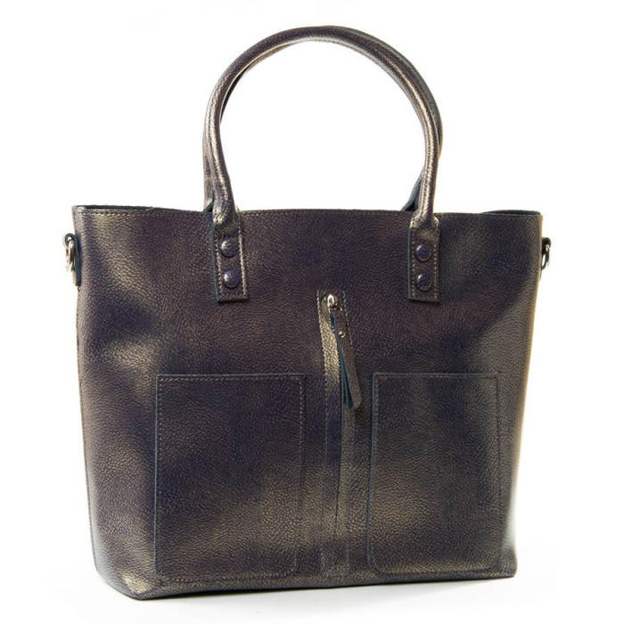 Женская сумка из натуральной кожи. Закрывается на молнию. Внутри сумки двойное отделение, разделенное карманом-перегородкой на молнии, боковой карман на молнии и открытый двойной карман. На обратной стороне сумки карман на молнии. На фасаде два открытых кармашка. В комплекте регулируемый плечевой ремень.