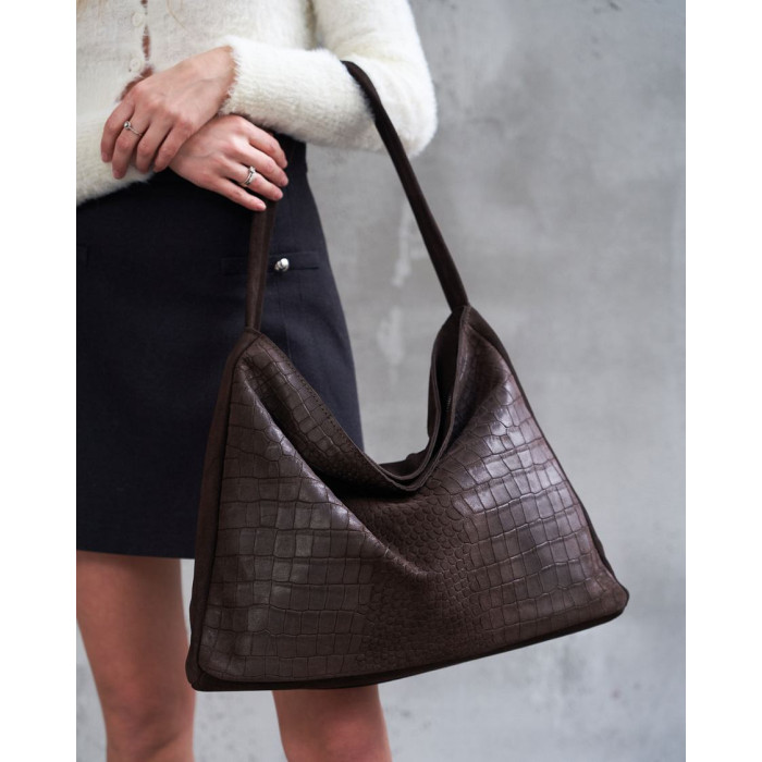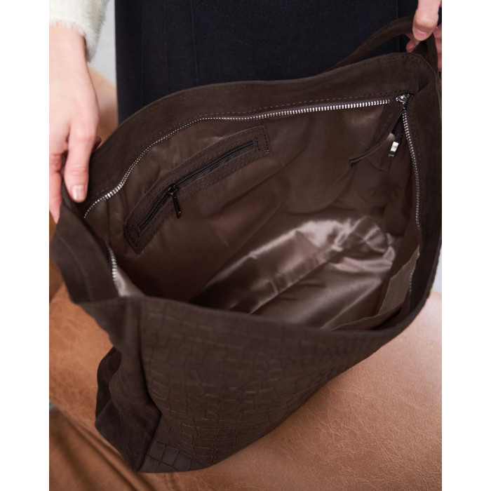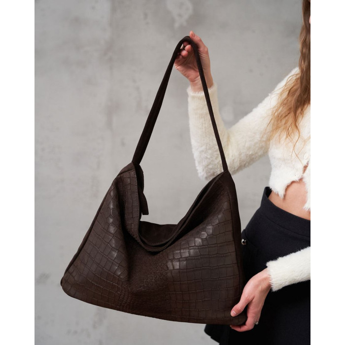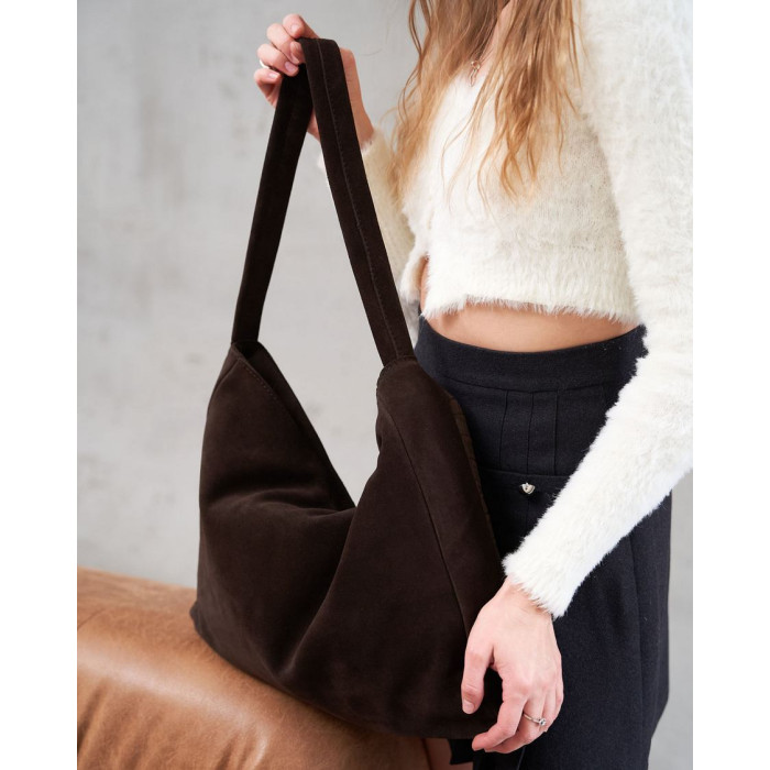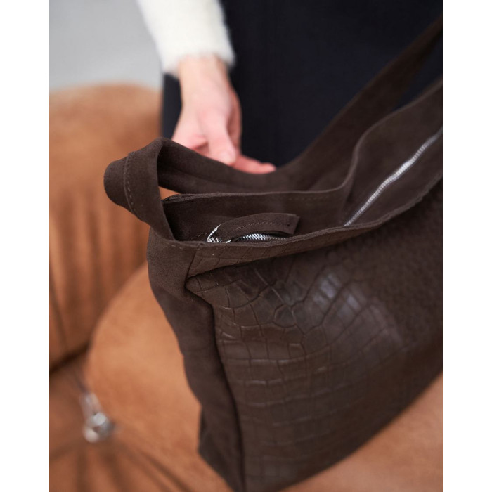 Стильная женская сумка K7045, производитель Украина «Welassie», сумки в наличии оптом на 7 км Одесса, цвет шоколадний, материал сумки натуральная кожа, замша. Сумка открывается при помощи молнии. Внутри сумка имеет один открытый карман и на змейке. Сумка имеет ручку 20 см (от верха сумки).