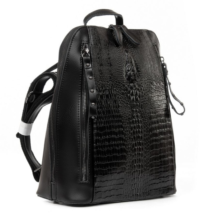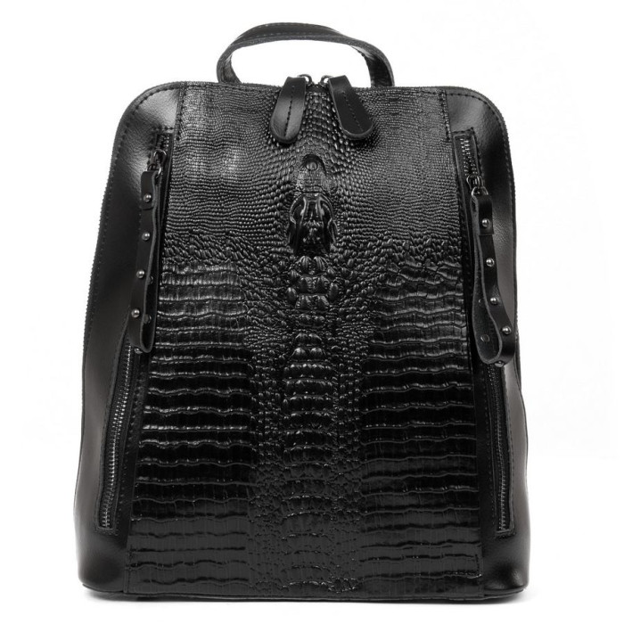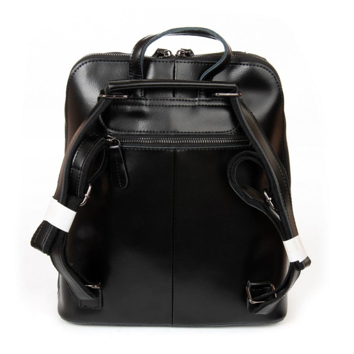 Женская кожаная сумка-рюкзак Alex Rai. Изготовлена из натуральной плотной кожи. Можно носить на плечевых лямках или на длинном ремне. Закрывается на молнию. Внутри находится двойное отделение разделенное карманом-перегородкой на молнии, боковой карман на молнии и открытый карман. На фасаде и на обратной стороне расположены карманы на молнии. Жесткое дно на металлических ножках.