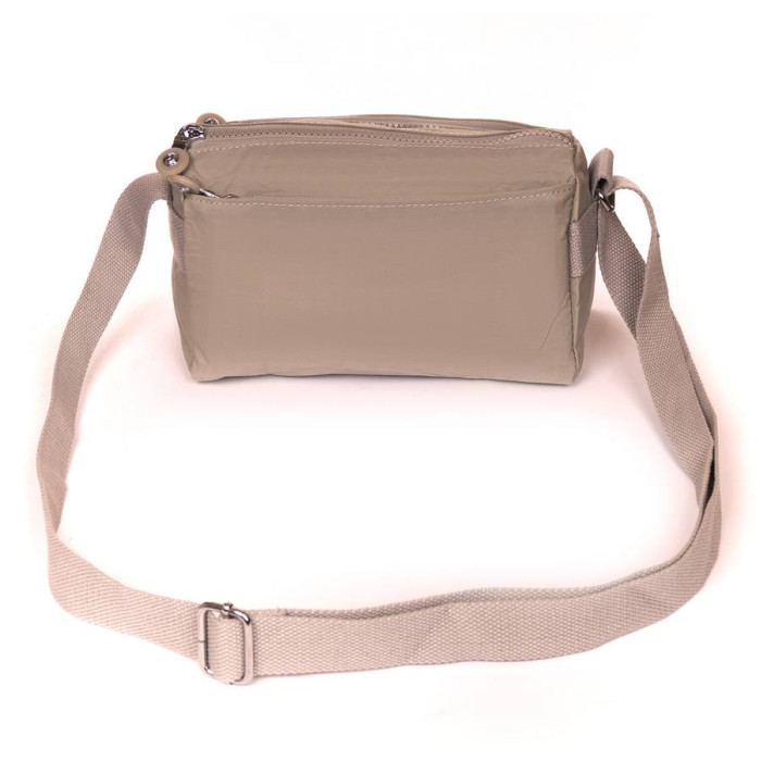 Женская сумочка кросс боди. Изготовлена из водотталкивающего текстиля. Два отделения, закрываются на молнию. Внутри есть боковой карман на молнии и открытый карман с множеством отсеков для визитных карт. На фасаде и на обратной стороне находятся вместительные карманы на молнии.
