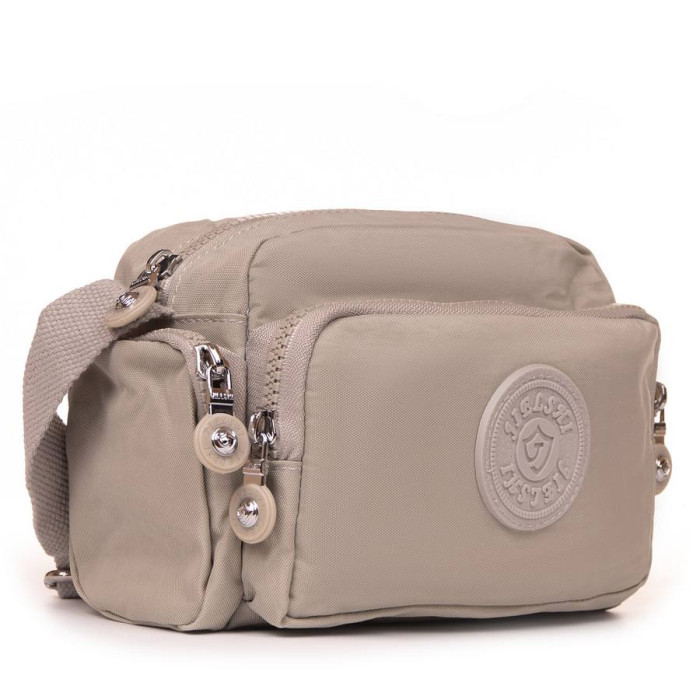 Женская сумочка кросс боди. Изготовлена из водотталкивающего текстиля. Одно отделение, закрывается на молнию. Внутри есть боковой карман на молнии и открытый карман. На фасаде и на обратной стороне находятся вместительные карманы на молнии. А на торцах расположены маленькие кармашки на молнии