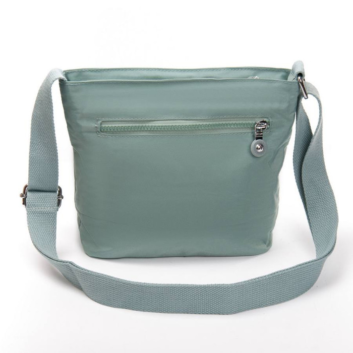 Женская сумка кросс боди. Изготовлена из водоотталкивающего текстиля. Одно отделение, закрывается на молнию. Внутри есть боковой карман на молнии и открытый двойной карман. На фасаде и на обратной стороне находятся вместительные карманы на молнии.