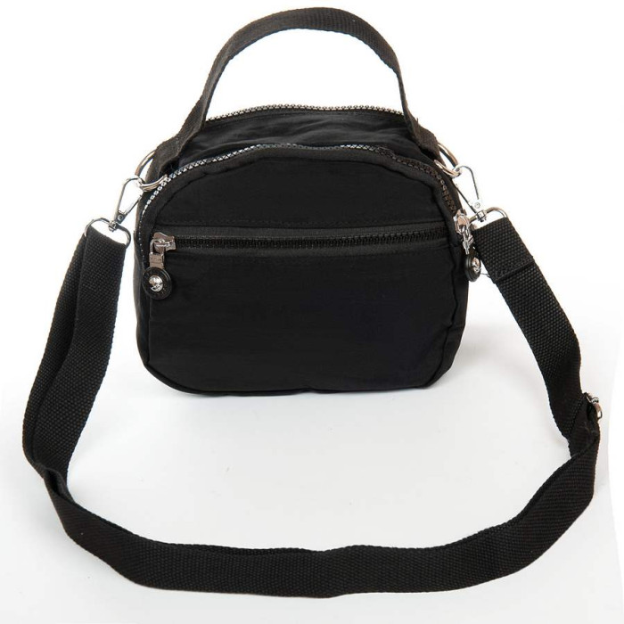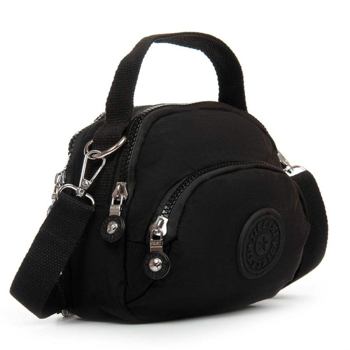 Женская сумочка кросс боди. Изготовлена из водотталкивающего текстиля. Два отделения, закрываются на молнию. Внутри есть боковой карман на молнии и открытый карман. На фасаде и на обратной стороне находятся вместительные карманы на молнии.