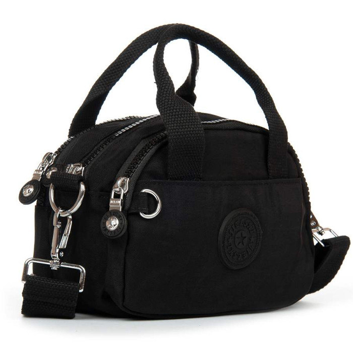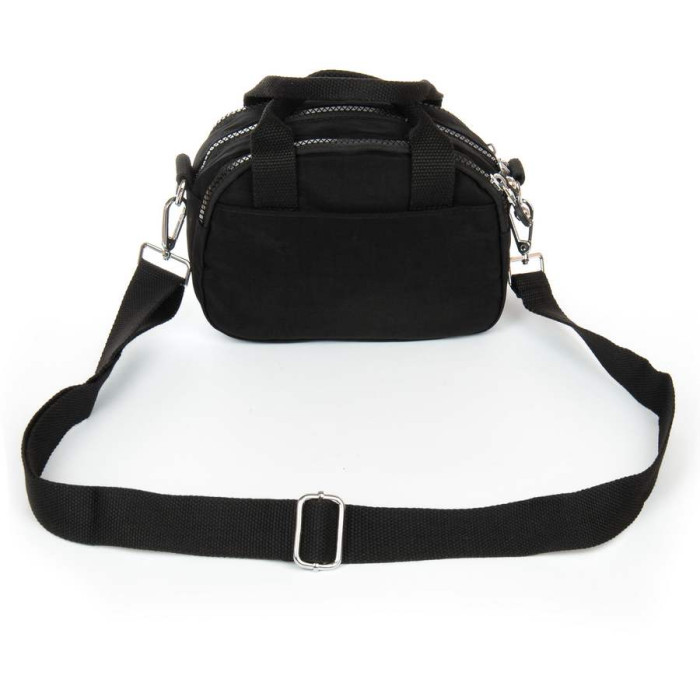 Женская сумочка кросс боди. Изготовлена из водотталкивающего текстиля. Три отделения, закрываются на молнию. Внутри есть боковой карман на молнии. На фасаде и на обратной стороне находятся вместительные карманы на магнитной кнопке.