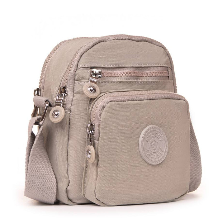 Женская сумочка кросс боди. Изготовлена из водоотталкивающего текстиля. Два отделения, закрываются на молнии. Внутри есть боковой карман на молнии. На фасаде находятся два кармана на молнии.