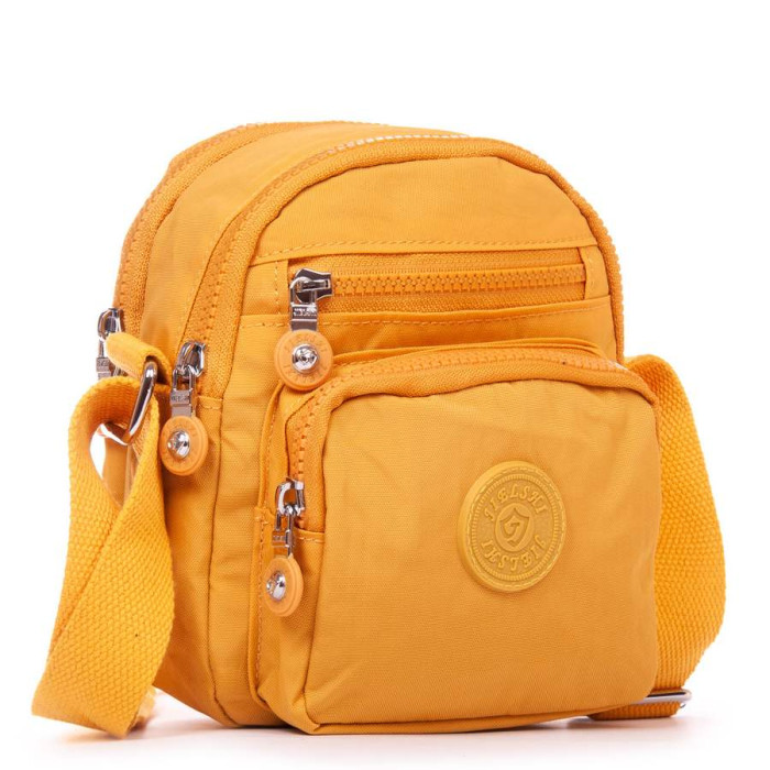 Женская сумочка кросс боди. Изготовлена из водоотталкивающего текстиля. Два отделения, закрываются на молнии. Внутри есть боковой карман на молнии. На фасаде находятся два кармана на молнии.