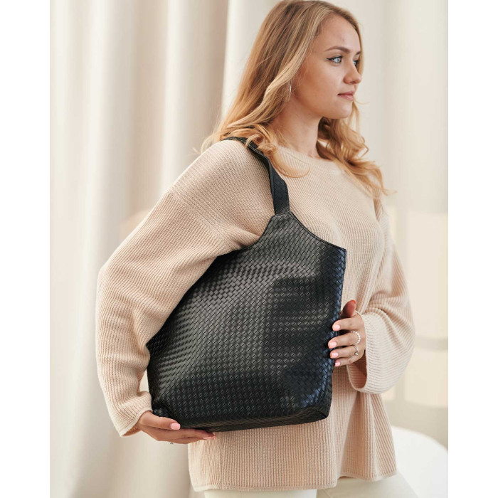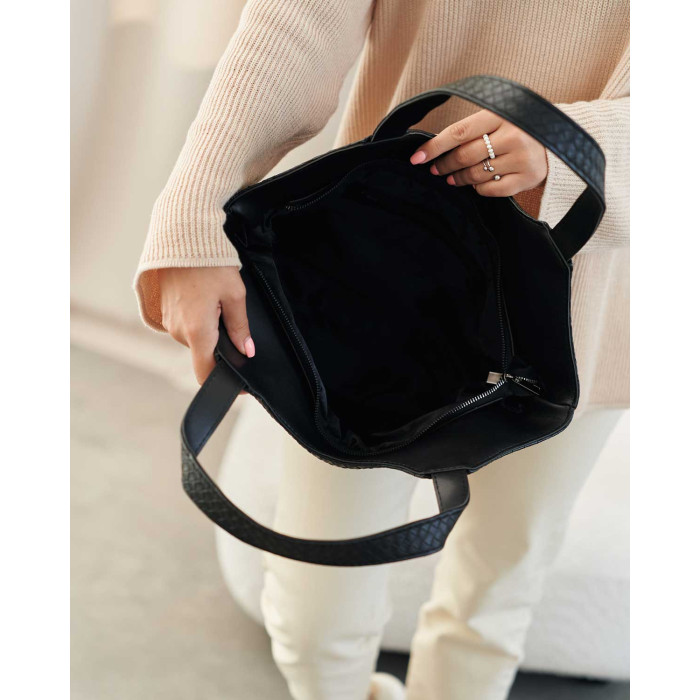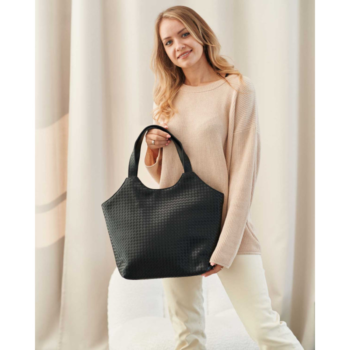 Женская сумка 68824 цвет черный, из экокожи высокого качества (материал похож на кожу). Сумка открывается при помощи молнии. Внутри на подкладке, имеет два кармана: открытый и на молнии. Снаружи есть карман для мелких предметов. Сумку удобно носить на плече