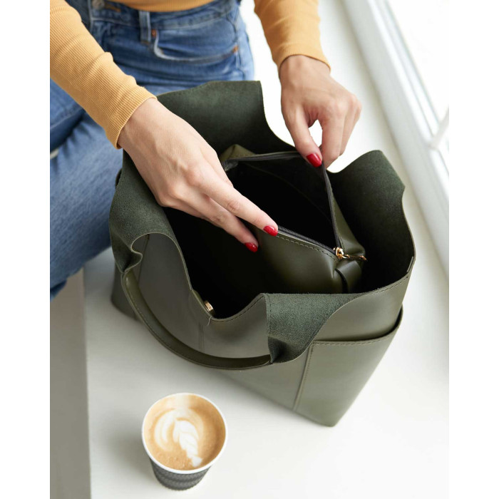 Сумка женская 69708 от производителя «Welassie» Украина, цвет оливковый, материал сумки экокожа высокого качества. Сумка открывается при помощи магнита. Внутри сумка имеет косметичку на молнии, которая прикреплена к сумке хлястиком.