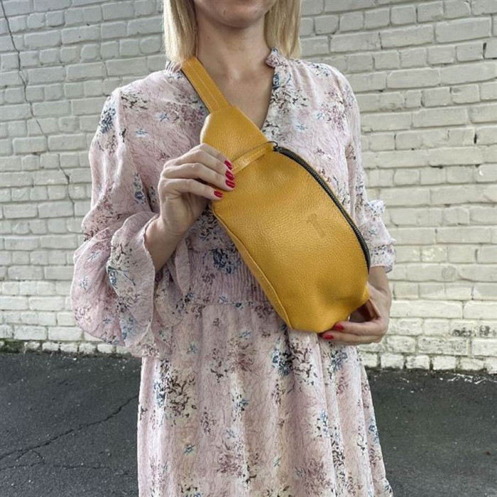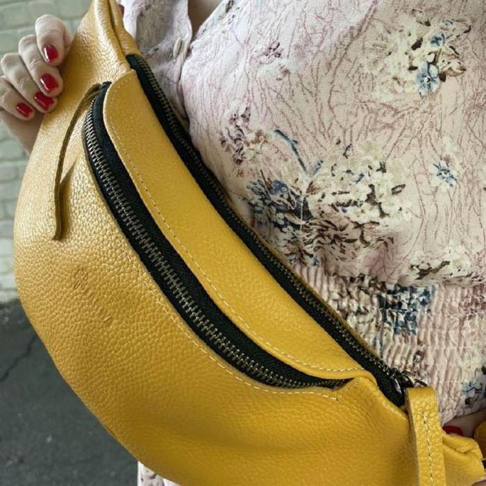 Женская бананка, кожаная женская сумка на пояс, поясная сумка TARWA 36-160 в цвете Маракуйя. Бананка..