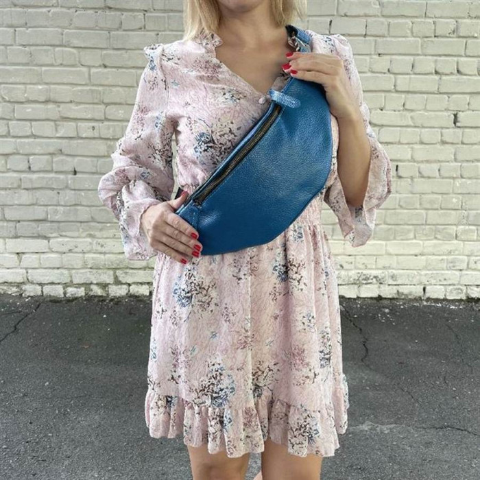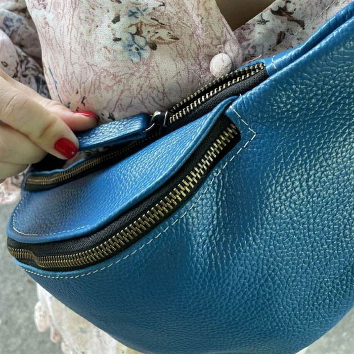 Женская бананка, кожаная женская сумка на пояс, поясная сумка TARWA 36-160 в цвете Морская волна. Бананка изготовлена полностью из кожи флотар, внутри кожаная бахрома. Два наружных отдела на молниях, внутри большого отдела - внутренний карман