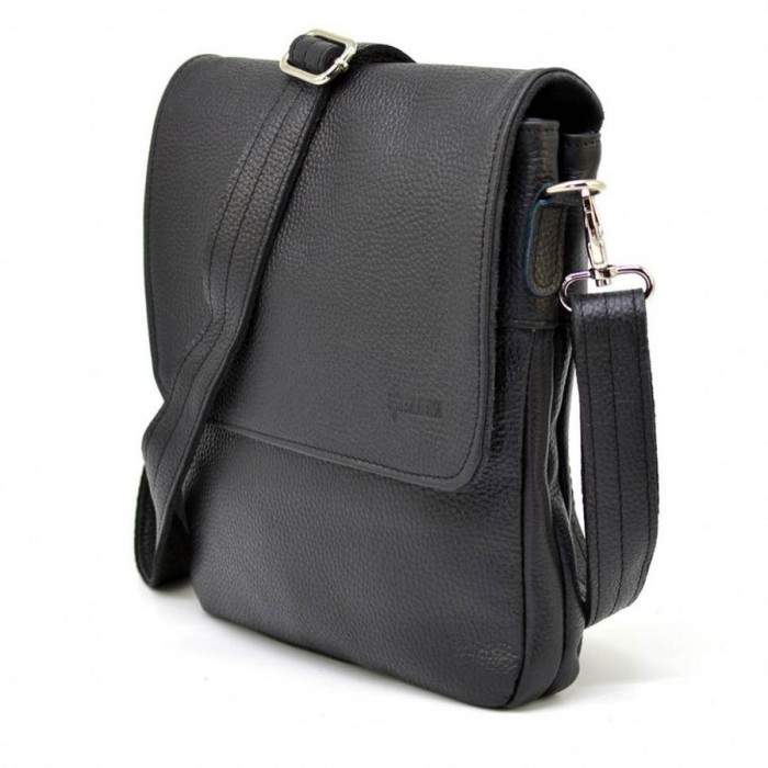 Стильная, компактная мужская сумка через плечо FA-0022-4lx от украинского бренда TARWA на два отделения, с клапаном, натуральная кожа Флотар. Модель может вмещать документы формата А5 и планшет. Изделие изготовлено из натуральной мягкой телячьей кожи. Сумка состоит из двух отделений, застегивающихся при помощи кожаного клапана, с магнитными кнопками. Внутри есть врезной и открытый карманы в одном отделении, и еще один открытый прячется под клапаном. На задней стороне есть врезной карман на молнии. Аксессуар удобно носить на плече благодаря плечевому ремню с регулировкой длинны.