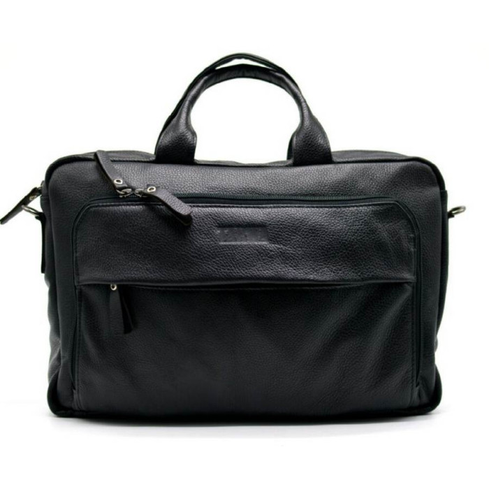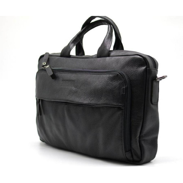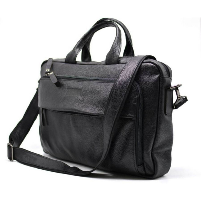 Сумка-портфель для ноутбука FA-7334-3md TARWA, из натуральной телячьей кожи, выделка флотар. Изделие состоит из одного большого, вместительного отделения, нвутри которого располагается отсек для документов или ноутбука. Внутренняя отделка – текстиль. Наружная сторона сумки оформлена при помощи накладного кармана, почти на всю поверхность сумки, который застегивается на молнию с двумя бегунками. Внутри накладного кармана есть кожаные карманы поменьше – отсеки для канцтоваров, мобильного телефона, планшета, визиток, кредитных карт, портмоне и т.д. На задней стороне сумки есть врезной карман на молнии, и рядом располагается функциональный ремень – клапан для крепления на дорожных ручках сумок и чемоданов (более детально см. фото). Сумочка оснащена двойными надежными кожаными ручками и кожаным наплечным съемным ремнем, который регулируется по длине. Такой аксессуар пригодится для путешествий, деловых поездок или просто на каждый день для работы в офисе.