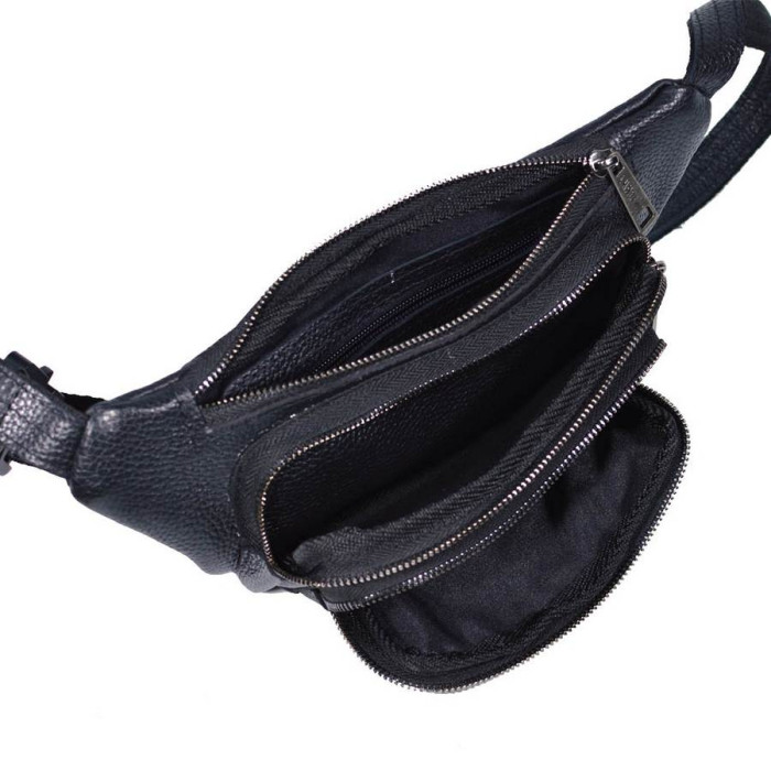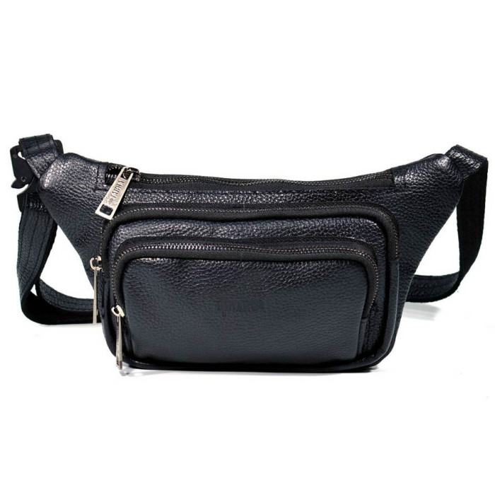 Функциональная поясная сумка FA-8179-3md бренда TARWA, из натуральной телячьей кожи, черного цвета. Изделие имеет основной отдел с кармашком внутри. Также два объемных кармана, прямоугольной формы, с молнией для хранения телефона, кошелька, документов. На задней стороне есть врезной карман с молнией. Модель имеет логотип бренда на лицевой стороне. Ремешок выполнен из кожи и регулируется по длине. Фурнитура металлическая, цвета темный никель. Аксессуар достаточно компактен, хотя и вместителен. Модель придется по вкусу не только мужчинам, но женщинам.
