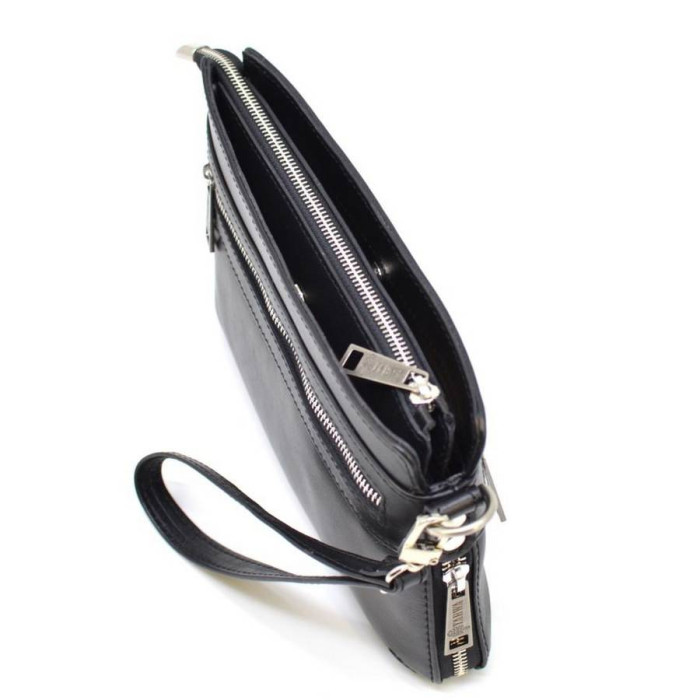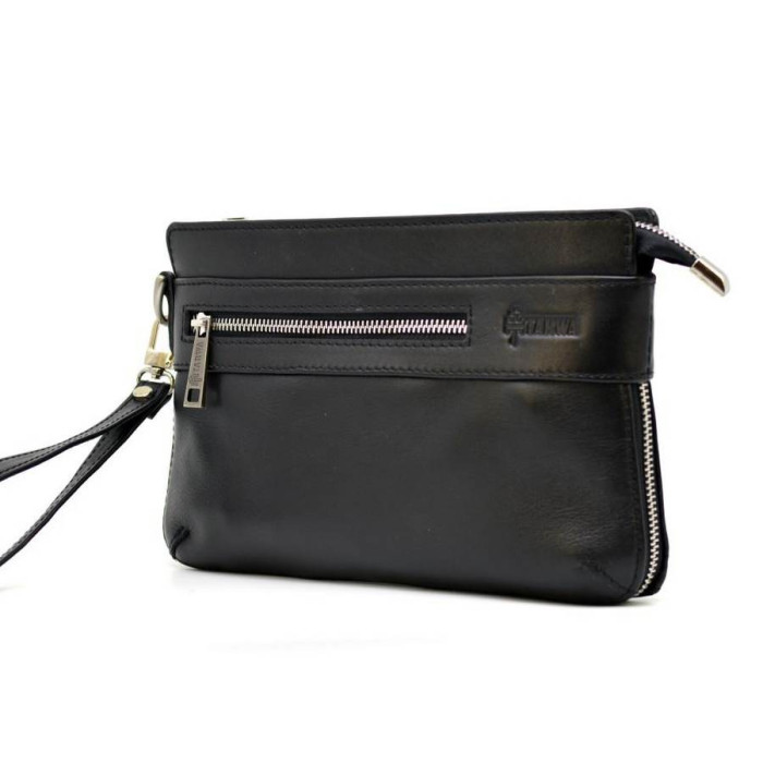 Стильный мужской клатч-барсетка из натуральной телячьей кожи черного цвета GA-8188-4lx, от украинского бренда TARWA. Яркий по своему дизайну аксессуар, подчеркнет статус своего владельца. Изделие состоит из трех отделений - среднее на молнии, два боковых на надежных магнитах, что позволит быстро достать нужный предмет. Внутри располагаются: один карман на молнии, 6 маленьких кармашков-слотов для пластиковых карт или других мелких предметов. Лицевую сторону аксессуара дополняет врезной карман с горизонтальной молнией и гравировка с логотипом производителя. На другой наружной стороне клатча также есть карман на молниии. Сумка имеет съемную ручку-петельку на карабине. Клатч оснащен расширителем (за счет молнии на 1 см увеличение толщины изделия). Фурнитура металлическая в цвете серебро. Подклад тканевый прочный. Качественные и стильные изделия из натуральной кожи от украинского производителя TARWA на нашем сайте!