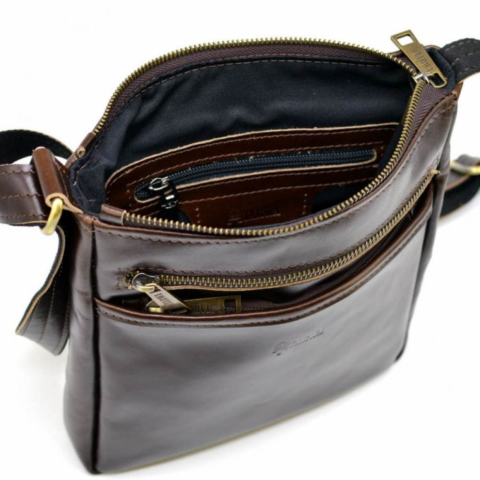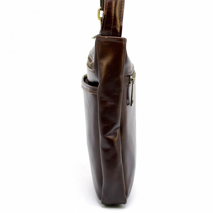Сумка небольшшх размеров через плечо GCa-1300-3md от украинского бренда TARWA. Первоклассное изделие выполнено из натуральной телячьей кожи. Сумка содержит в себе вместительное отделение с внутренней тканевой подкладкой, которое закрывается замком-молнией. Может поместить планшет, личные документы, гаджеты и аксессуары.Внутри есть карманы: два накладных и один на молнии. На задней и передней стенке есть врезные карманы на молнии. Сумку можно носить на плече благодаря удобному регулирующемуся плечевому ремню.