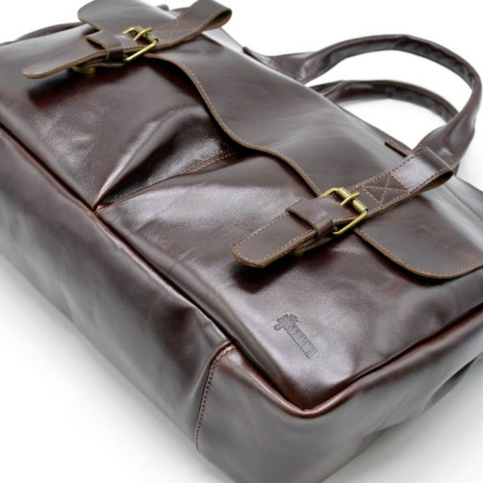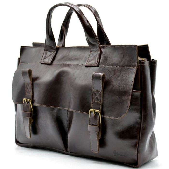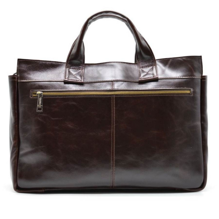 Изделие имеет одно основное отделение, внутри которого, есть большой кожаный карман, застегивающийся на липучку, для ноутбука 14" или документов. Также внутри сумочки есть два накладных маленьких кармана для телефонов, и один побольше, застегивающийся на молнию, например для ценных мелких вещей. На задней стороне сумки есть карман с молнией, а лицевую сторону украшают целых два крупных кармана, которые прикрыты наполовину кожаным клапаном с тонкими ремешками и магнитами. У данного аксессуара есть две маленькие кожаные ручки и съемный ремень через плечо, кожаный с текстильной основой, крепящийся с помощью металлических карабинов.