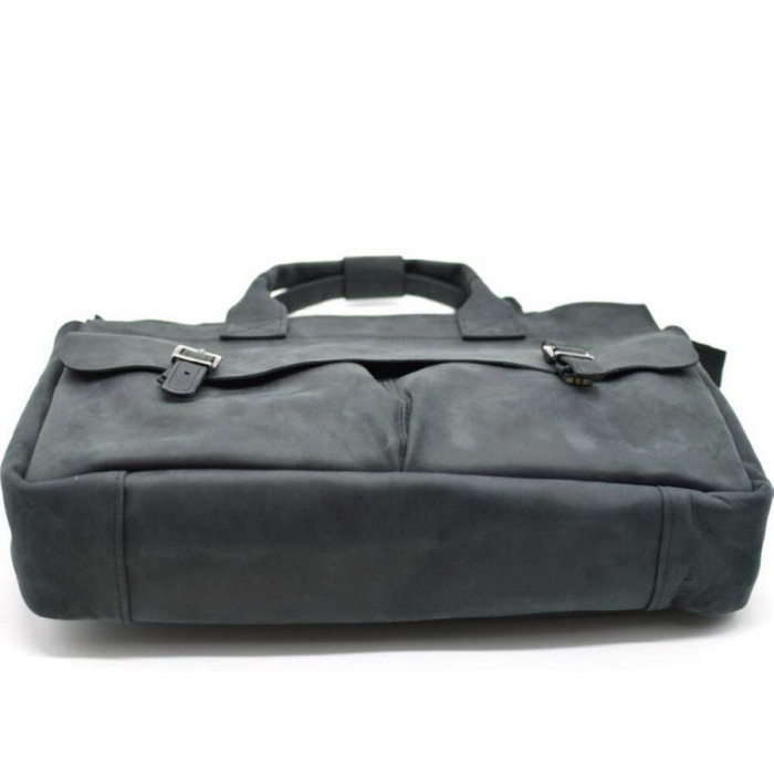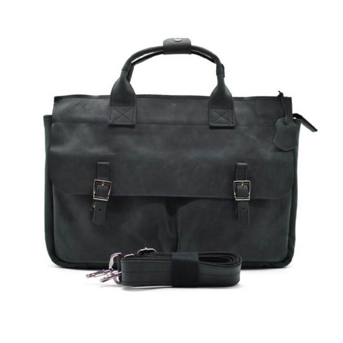 Застегивается сумка при помощи молнии на главном отделении. Снаружи на задней стороне сумки есть карман на молнии. На лицевой стороне аксессуара располагаются два вместительных кармана, закрывающихся кожаным клапаном с ремешками и магнитами. В комплекте есть наплечный съемный ремень с широким диапазоном регулировки длинны. Внутри сумка обшита плотной тканью. Фурнитура - серебро. Данный аксессуар может использоваться как брифкейс, портфель, ежедневная кожаная сумка, сумка на плечо, сумка кожаная для ноутбука.