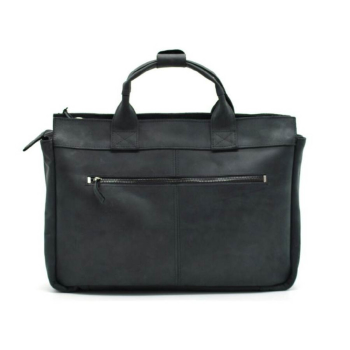 Винтажная мужская кожаная сумка RA-7107-2md TARWA, кожа выделки crazy horse, черного цвета, матовая фактура с искусственным старением с тканевым подкладом