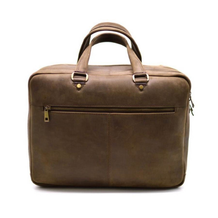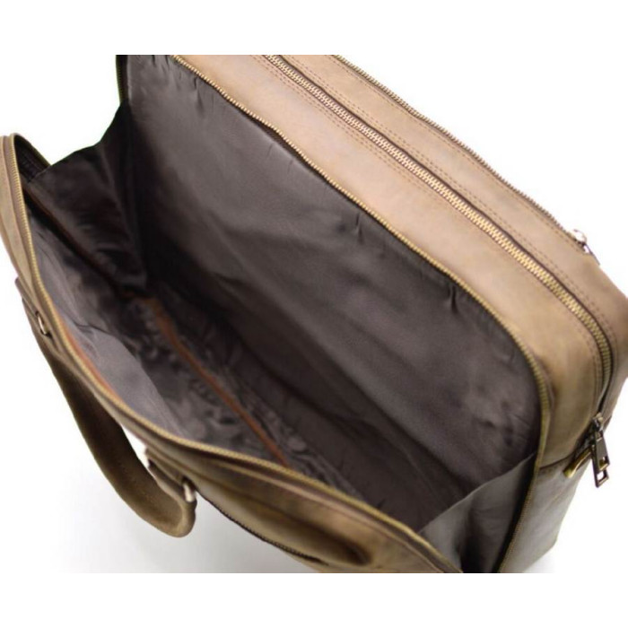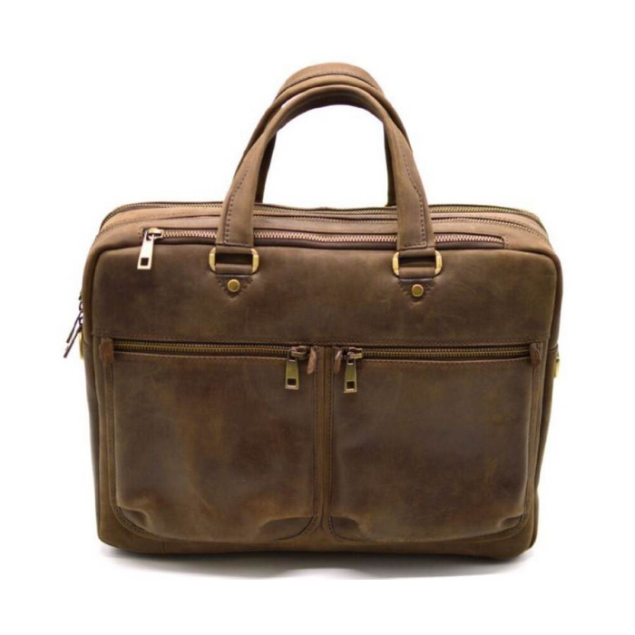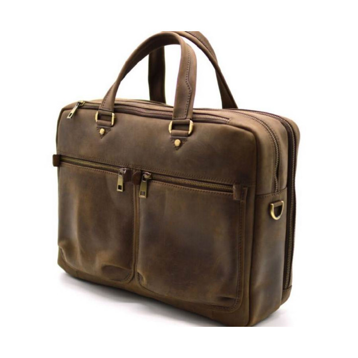 Мужская сумка-порфель для ноутбука более 15 дюймов и документов А4, из натуральной кожи выделки Крейзи Хорс RC-4664-4lx, от украинского бренда TARWA. Изделие выполнено из телячьей кожи, с использованием качественной текстильной подкладки и металлической фурнитуры. Портфель состоит из трех основных отделов, застегивающихся каждый отдельно на молнию. В самом большом центральном отделении есть три накладных кожаных кармана, которые удобно использовать для хранения телефона, личных документов, визиток, а также имеется один большой караман на молнии. Наружная сторона сумки украшена двумя практичными, накладными карманами, застегивающимися на молнию. На задней стороне изделия, также имеется карман на молнии. Сумка оснащена двумя короткими кожаными ручками для переноса в руке, а также есть съемный наплечный широкий кожаный ремень, для носки на плече. Даннная модель, не только красивый, но и функциональный аксессуар для делового человека.