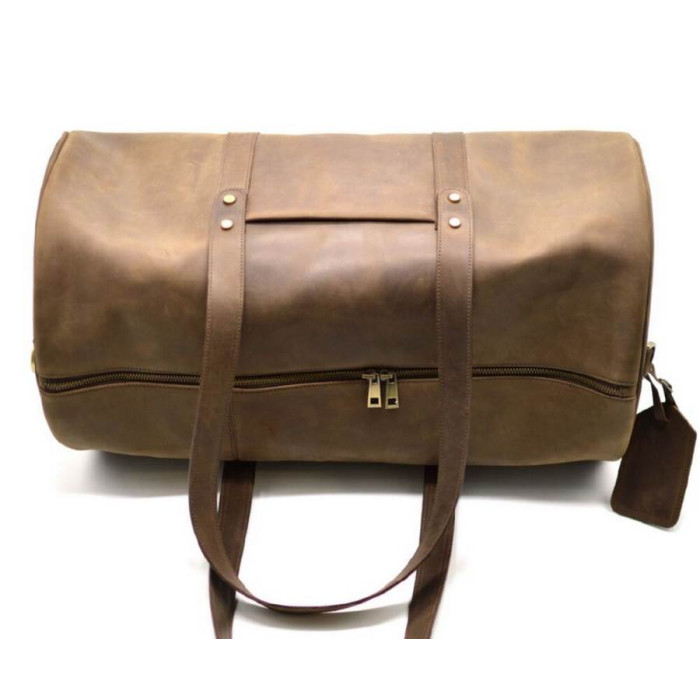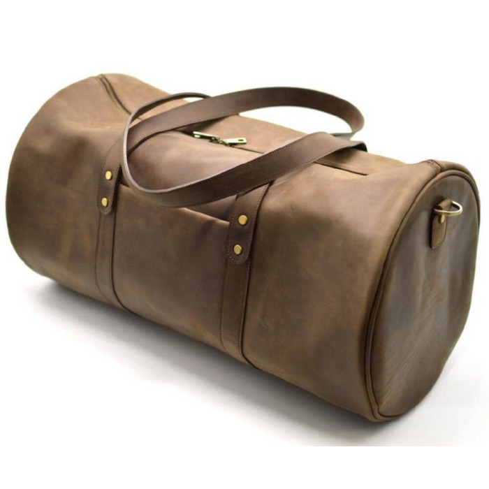 Дорожная cумка в виде бочонка из натуральной телячьей кожи, выделки Крейзи Хорс, RC-5564-4lx от украинского бренда TARWA! Изделие пошито из качественной кожи, с использованием металлической фурнитуры и прочной текстильной подкладки. Сумка сотоит из одного большого отделения, внутри которого имеется большой карман, застегивающийся на молнию. Ну и конечно же, внутри есть еще три маленьких кожаных накладных кармана для всякой мелочи: телефон, портмоне, визитки, документы и т.д. Сумка застегивается на металлическую молнию с двумя бегунками, и имеет две кожаные ручки, что позволит носить ее в руке. В комплетации изделия есть съемный наплечный ремень, выполненный из кожи с тканевой основой, что предотвратит растягивание ремня. Интересная конструкция сумки в совокупности с плотной кожей, позволяют изделию держать форму даже в полупустом состоянии и Ваши вещи всегда будут в порядке. Надежный аксессуар станет полезным спутником в любой поездке!