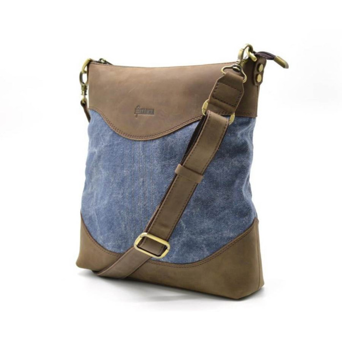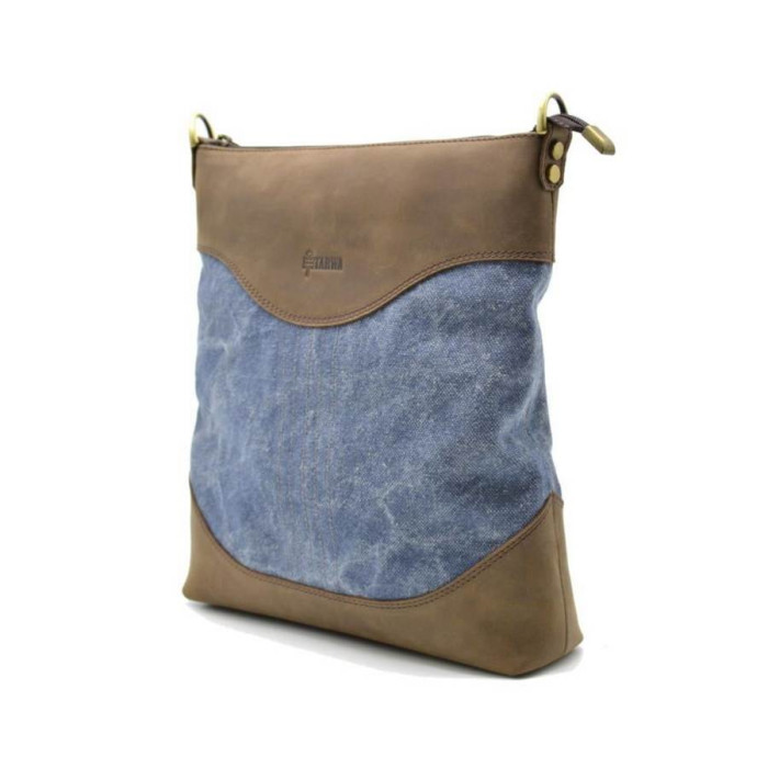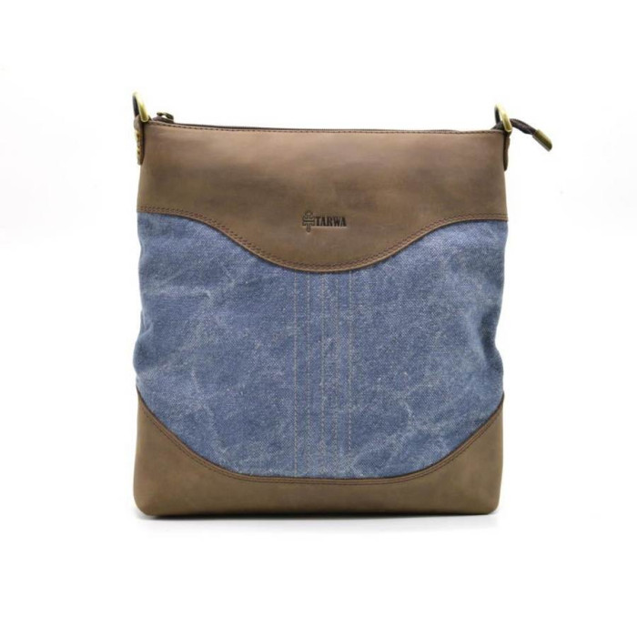 Удобная, повседневная мужская сумка, микс парусина+кожа RK-1807-4lx от украинского бренда TARWA. Отличный выбор для работы и учебы. Дизайн под джинс очень понравится студентам и школьникам. Изделие состоит из одного вместительного отделения с уплотненным отсеком с липучкой для гаджетов или документов внутри. Также, внутри имеются два открытых кармашка для телефона и портмоне и один большой на молнии для ценных вещей. Сумка застегивается на молнию. На задней стороне есть еще один карман с молнией. Аксессуар выполнен из прочных материалов: ткань парусина ("Canvas") и матовая натуральная телячья кожа. В комплектацию входит съемный, кожаный, наплечный ремень. На лицевой стороне присутствует логотип бренда.