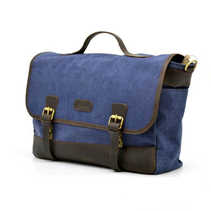 Портфель мужской из ткани канваз со вставками из натуральной кожи RK-7880-4lx от украинского бренда TARWA. Идеальный вариант для работы и учебы, вмещает ноутбук до 15" и документы А4. Изделие имеет одно вместительное отделение с уплотненной перегородкой внутри для ноутбука и большим врезным карманом с молнией. Портфель застегивается при помощи молнии и сверху, для надежности, накрывается клапаном с ремешками и портфельными металлическими застежками. Под клапаном располагается большой открытый карман, а на задней стороне есть врезной с молнией. Аксессуар оснащен маленькой кожаной ручкой, а также съемным регулируемым ремнем на плечо.