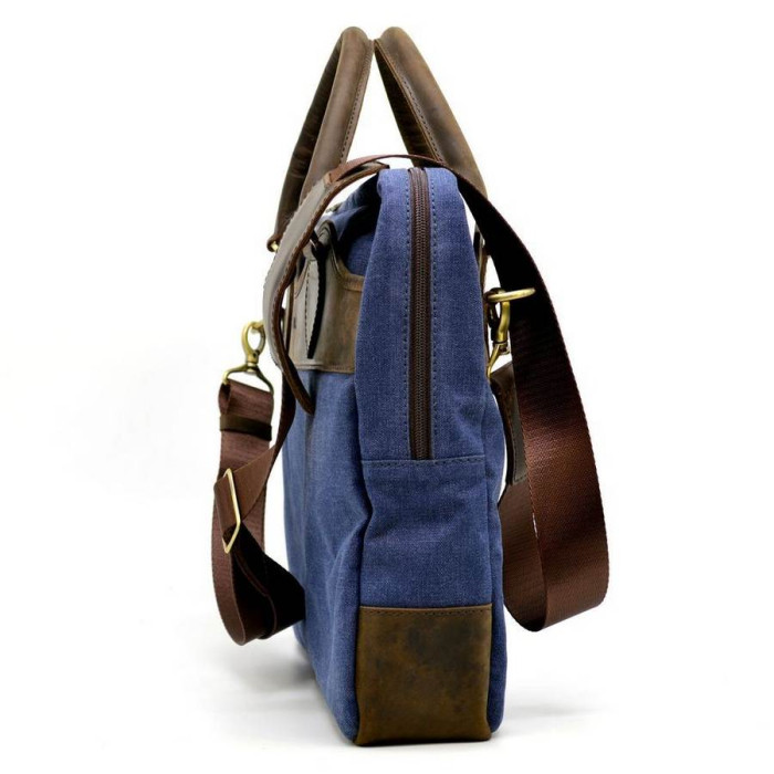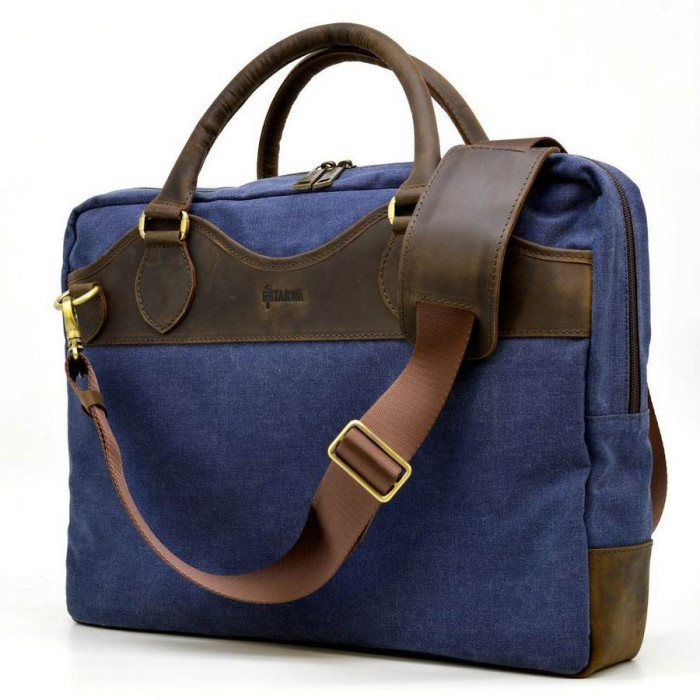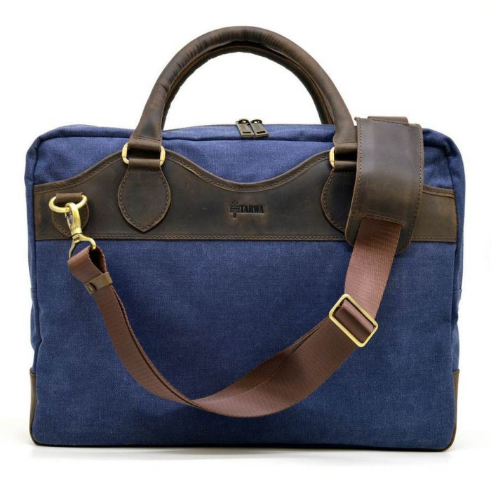 Сумка мужская микс ткани Канвас и натуральной кожи Crazy Horse RK-8839-4lx, от украинского бренда TARWA. Изделие имеет одно основное отделение, внутри которого есть уплотненный отсек с хлястиком на липучке для ноутбука до 14" или документов А4. Также, внутри Вы найдете большой врезной карман с молнией. Сумка застегивается на молнию с двумя бегунками, что очень удобно в использовании. По обеим наружным сторонам расположились плоские карманы-отсеки с магнитными кнопками (занимают почти всю площадь изделия). Сумка декорирована кожаными вставками и логотипом бренда. Аксессуар будет удобно носить в руке, благодаря двум кожаным ручкам, а также в комплектацию входит съемный текстильный ремень с кожаным наплечником.