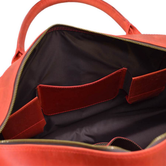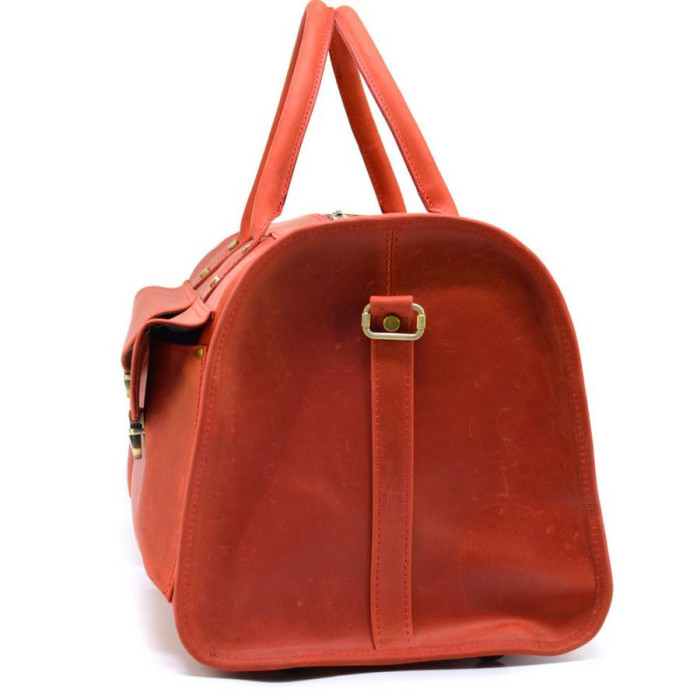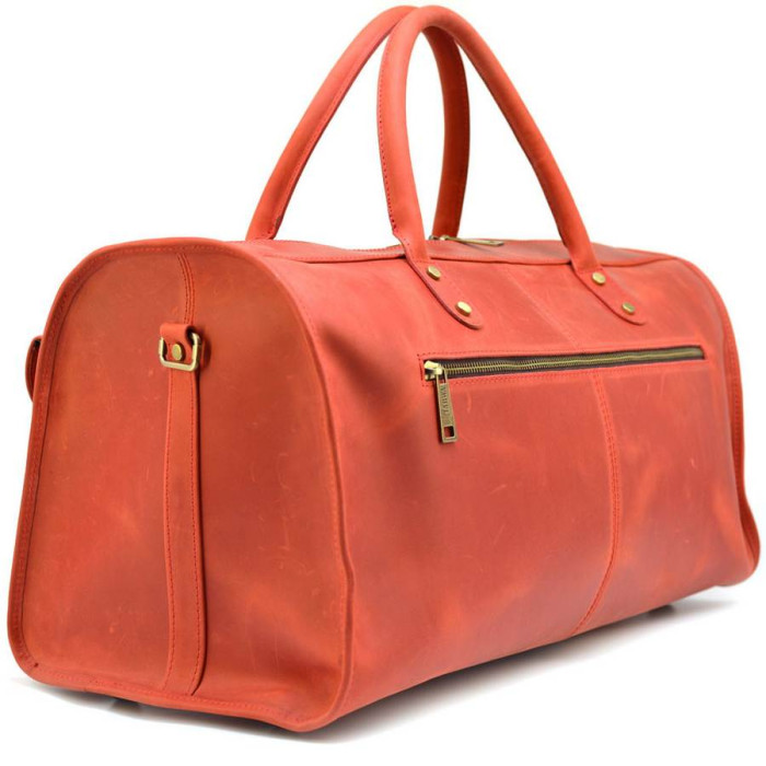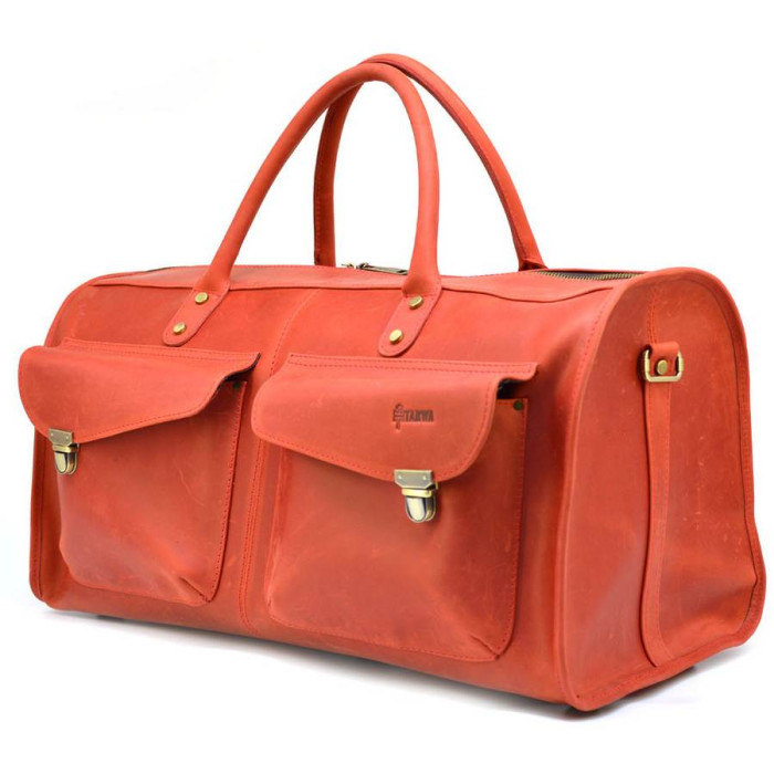 Стильная дорожная сумка-саквояж RC-5664-4lx от украинского бренда TARWA, изготовлена из натуральной кожи выделки Крейзи Хорс. Сумки данного производителя принадлежат к "высшей лиге" кожаных дорожных аксессуаров. Классика дизайна плюс практичность. Изделие выполнено из высококачественных материалов: телячья кожа, плотная текстильная подкладка, металлическая фурнитура. Изделие имеет одно вместительное отделение, которое застегивается на молнию с двумя бегунками. Внутри сумки есть два больших кармана для документов, на одной стороне, и три маленьких накладных кармана для документов и телефонов, на другой стороне сумки. Предусмотрительный производитель дополнил аксессуар карманами с молниями внутри на торцах с обеих сторон, для ценных вещей. Уплотненное дно защищено от повреждений пятью металлическими ножками. На лицевой стороне аксессуара располагаются два накладных кармана с клапанами и замочками. На задней стороне, также есть карман на молнии. Две короткие прочные кожаные ручки, для носки в руке. В комплекте есть съемный кожаный ремень с текстильной основой, для ношения через плечо.