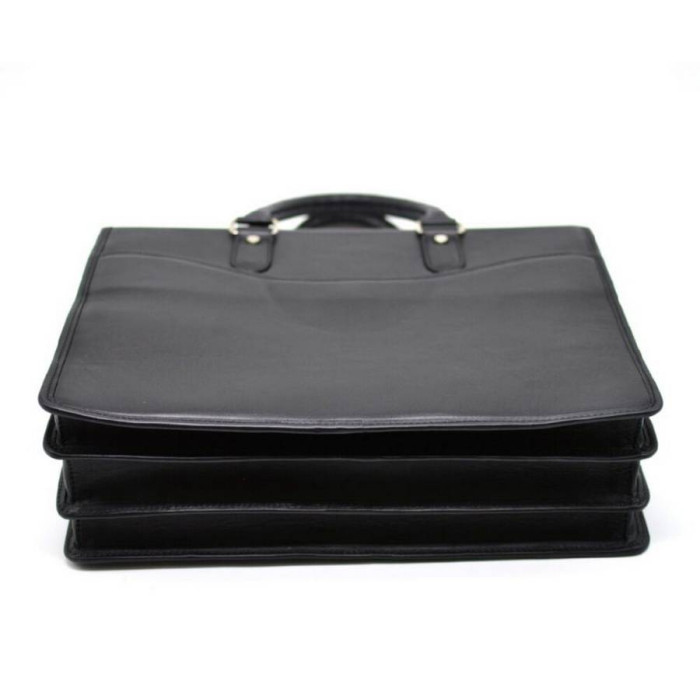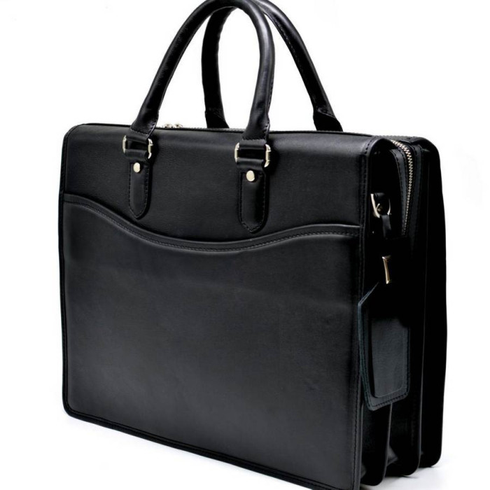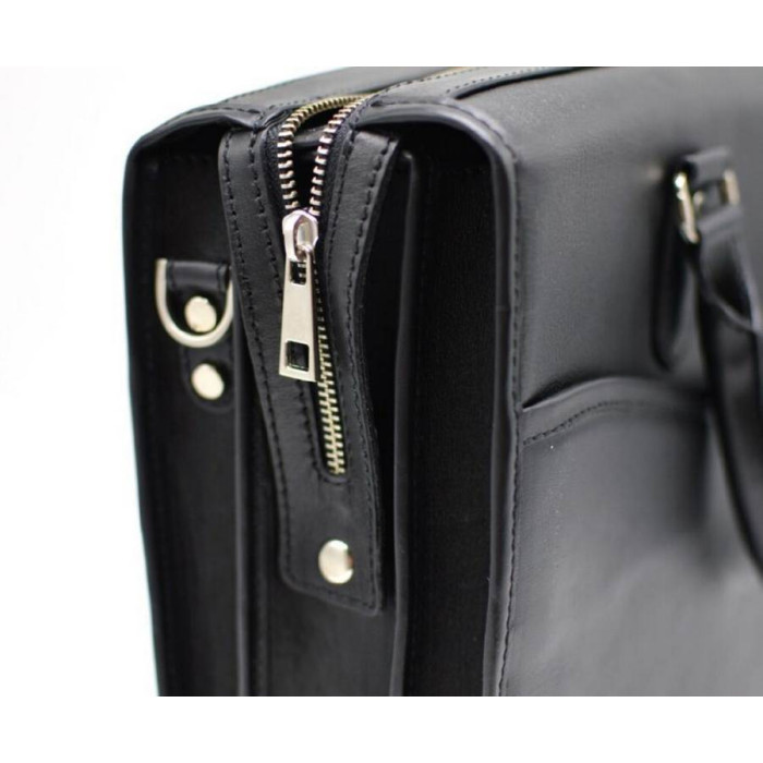 Данная модель выполнена в классическом стиле, для деловых людей, которые предпочитают практичность и удобство. Изделие выполнено из натуральной телячьей кожи отменной выделки. Сумка снабжена двумя удобными ручками. Дополнительный регулируемый наплечный ремень, на карабинах, при необходимости отстегивается. Аксессуар состоит из объемного отделения для ноутбука, бумаг, папок или книг, также есть карманы для телефона и ручек. На лицевой стороне портфеля располагается дополнительный отсек, в виде наружного плоского большого кармана, для быстого доступа к вещам, которые всегда должны быть под рукой.