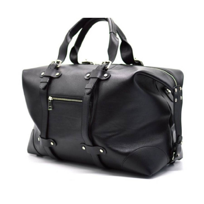 Большая кожаная дорожная сумка очень удобна для командировок или поездок. Дорогой вид сумки подчеркивает статус ее владельца. Также сейчас стало очень популярно использовать большие кожаные сумки для посещения спортзала. Такую сумку просто бросить в багажник автомобиля, она не займет много места и будет стильным дополнением Вашего гардероба. Если Вы отдаете предпочтение дорогим, красивым, стильным сумкам, то рекомендуем купить такую сумку исключительного качества. Изделие дополнено красивой фурнитурой. Ручки, ремешки, украшенные пряжками, создают дорогой имидж. Предназначена для носки в руке. На лицей стороне сумки один карман на молнии.