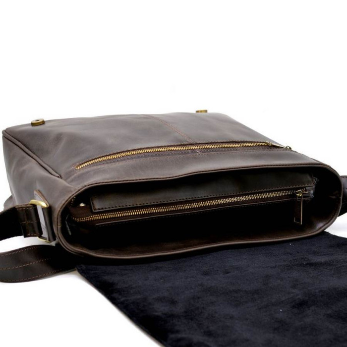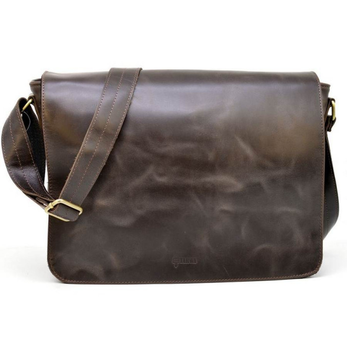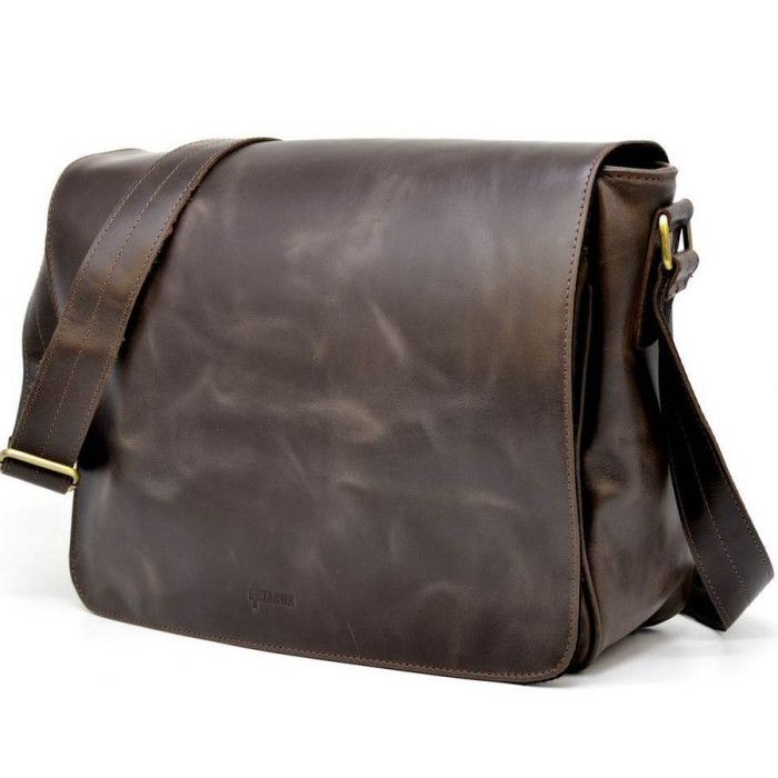Мужская сумка через плечо с клапаном TARWA TC-1047-3md, выполнена из натуральной телячьей кожи. Изделие имеет одно вместительное отделение, внутри которого располагается мягкий отсек для планшета с хлястиком на липучке, а также три кармана: один вместительный врезной на молнии и два открытых для портмоне и телефона. В основном отделении может поместиться ноутбук до 14" и документы формата А. Снаружи на лицевой стороне под клапаном есть большой плоский врезной карман с молнией. Снаружи на задней стороне - также врезной карман на молнии. Сумка застегивается на молнию, а сверху еще накрывается большим кожаным клапаном. Наплечный ремень из кожи с регулируемой длиной позволяет подобрать максимально удобное положения на плече. Аксессуар средней жесткости, отлично держит форму.