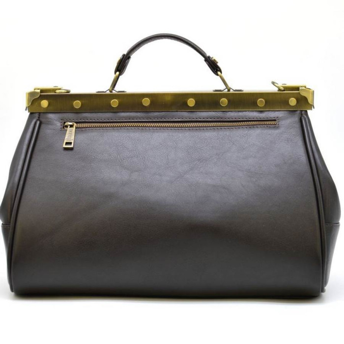 Саквояж – это превосходный выбор для командировок, поездок и путешествий. Имеет классическую форму. Декорирован 2 ремнями с бронзовой фурнитурой. Аксессуар изготовлен из натуральной телячьей кожи высокого качества. Закрывается саквояж рамочной планкой с двумя защёлками по бокам. Состоит из двух равноценных по размеру отделений, которые разделяет плоский карман на молнии. Имеется один карман на молнии снаружи и внутри, а также небольшой 1 карман и 2 дополнительных, выполненных из кожи для телефона и мелких аксессуаров. Есть длинный регулируемый плечевой ремень, что обеспечивает комфорт передвижения в путешествии или бизнес поездке. Преимущества кожаного саквояжа ТАРВА 3344