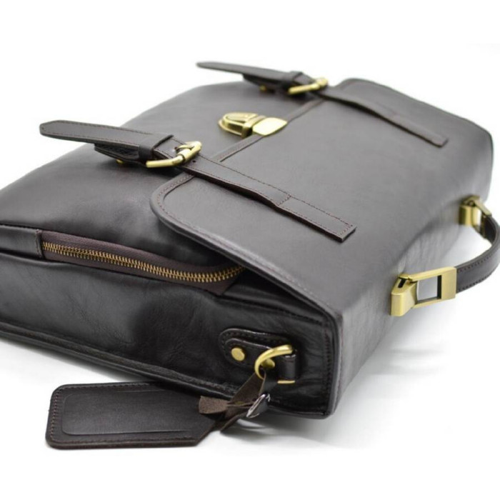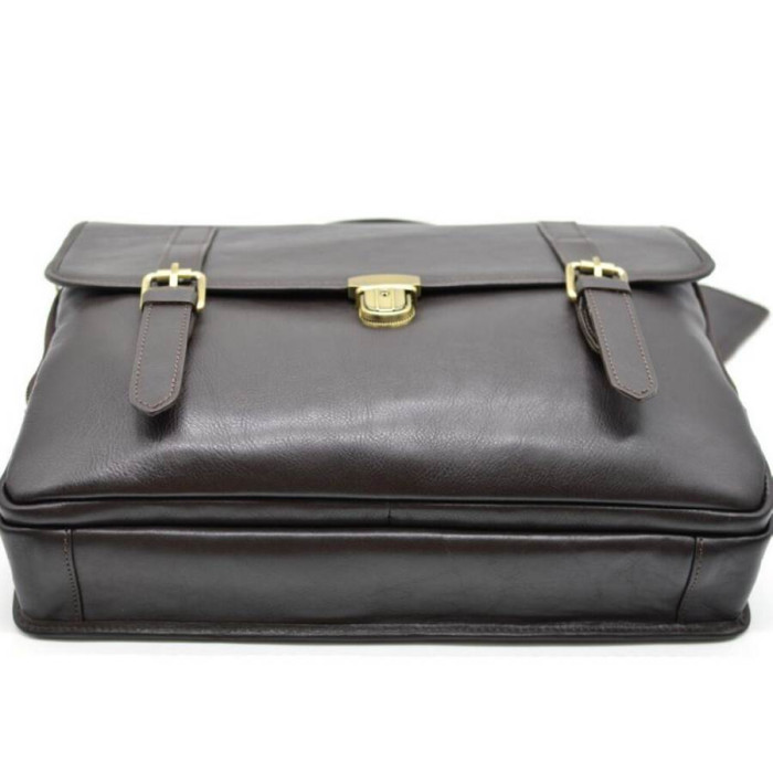 Деловой портфель мужской TC-4464-4lx TARWA, из натуральной телячьей кожи. Изделие состоит из одного основного отдела, которое способно вместить даже крупный ноутбук или папки с бумагами. Внутри есть три маленьких кармана для телефона, документов, портмоне, а также на другой стенке внутри есть большой карман, застегивающийся на молнию. Портфель закрывается кожаным клапаном с защелкивающимся замочком и двумя ремнями с магнитной кнопкой. Под этим клапаном скрывается вместительный карман с молнией. На задней стороне изделия имеется плоский, очень удобный карман, практически на всю поверхность, на магнитной кнопке. Аксессуар наделен кожаной ручкой с металлической основой для крепкости, крепящейся на металлическую фурнитуру. Производитель позаботился и о ремне на плечо, который регулируется на нужную длину и снимается по мере необходимости.