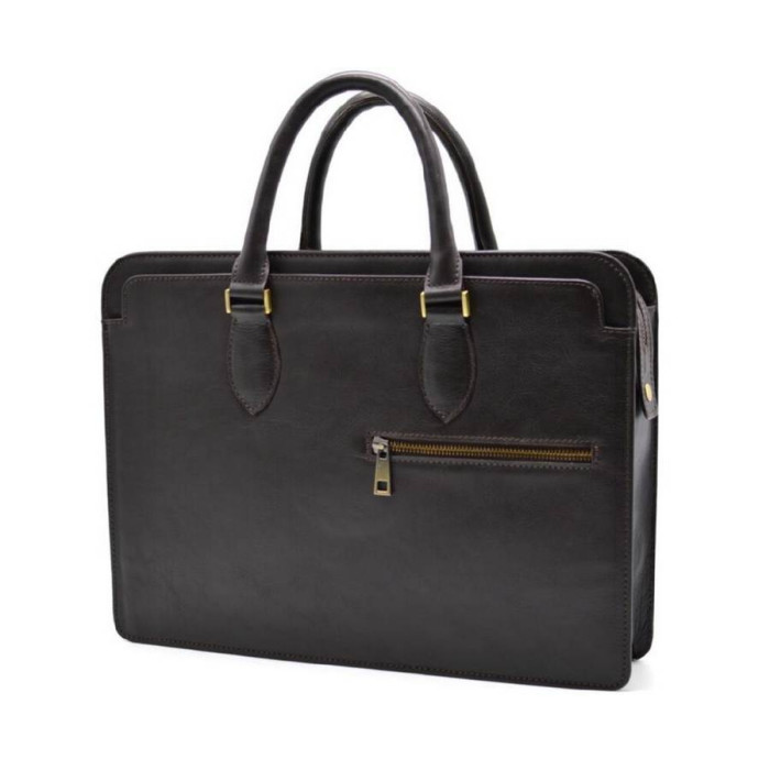 Кожаный деловой портфель TC-4864-4lx TARWA, коричневого цвета, с двумя ручками, для носки в руке. Вместительньй классический портфель, две ручки, внешний врезной карман на молнии. В комплектности отсутствует наплечный ремень. Внутри изделие состоит из одного отдела, внутри которого имеется большой карман на молнии, и еще три кожаных небольших кармана для телефона и документов. Сумка выполнена из высшего сорта телячьей кожи, с использованием плотной текстильной подкладки и качественной металлической фурнитуры. Обе наружные стороны аксесуара имеют плоский карман на всю поверхность и могут вместить в себя формат А4, закрываются магнитной кнопкой.