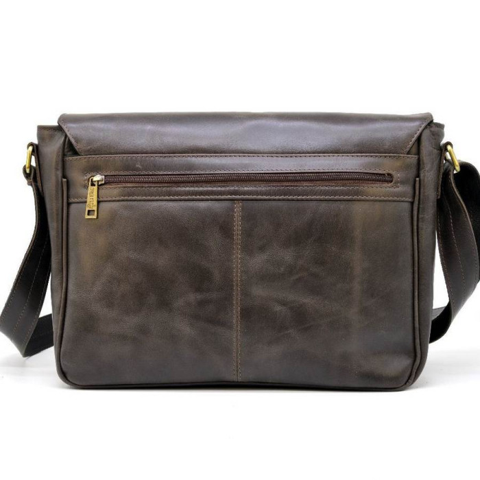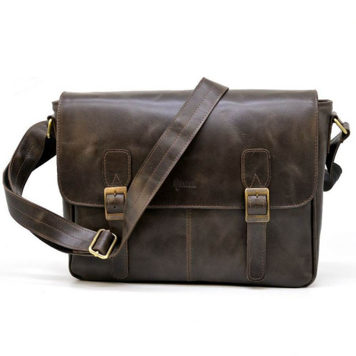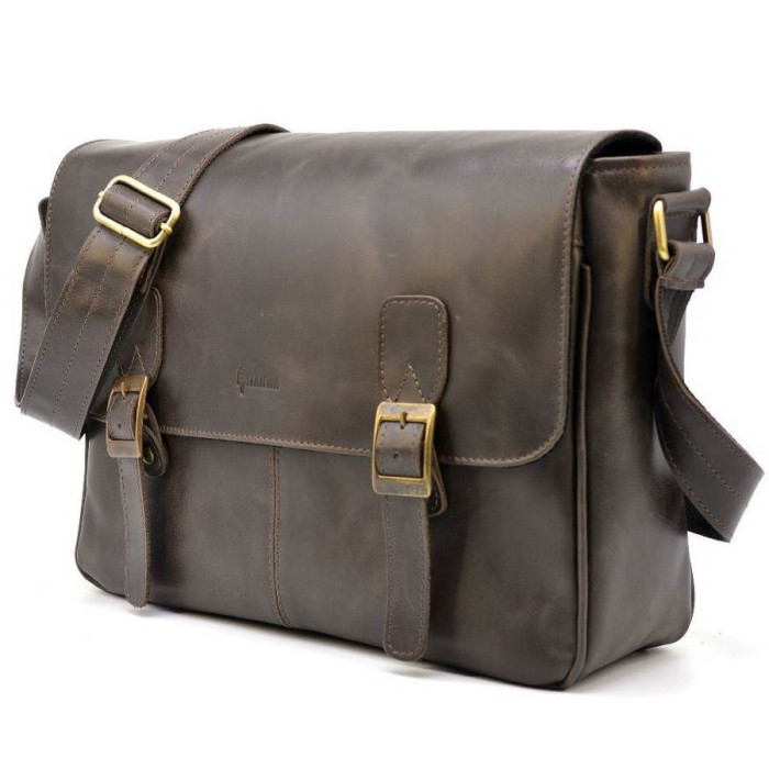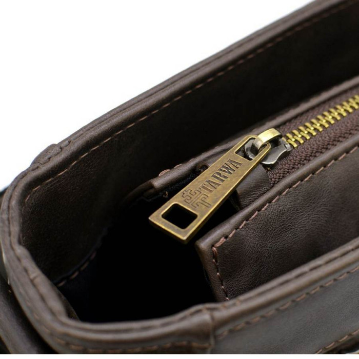 Кожаная сумка через плечо TC-7022-3md, от украинского бренда TARWA. Вмещает формат А4 и ноутбук до 14" в основном отделении. Идеальный вариант для учебы или работы. Изделие состоит из одного отделения, внутри которого раполагается уплотненный отсек для планшета или небольшого ноутбука. Внутри несколько карманов: один врезной карман на молнии, и два открытых кармана, например, для портмоне и смартфона. Под клапаном, на лицевой стороне прячется большой врезной карман с молнией. На задней стороне также имеется также врезной карман. Сумка застегивается на молнию и сверху накрывается кожаным клапаном с ремешками и магнитными кнопками. Аксессуар оснащен наплечным, несъемным ремнем с регулировкой длины, для комфортной носки изделия каждый день.