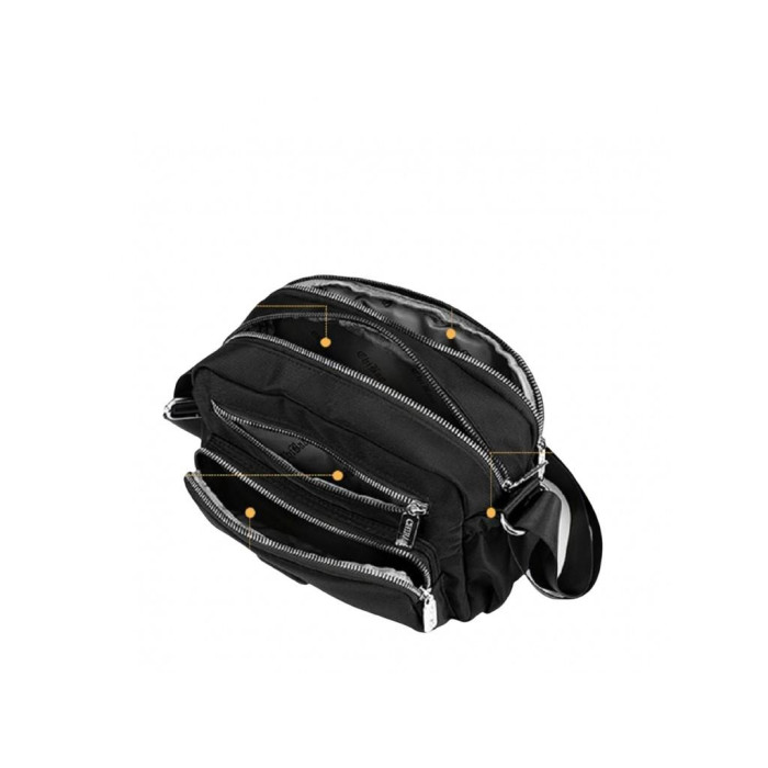Сумка женская Confident WT-5903A пошита из прочной черной ткани, с влагоотталкивающими свойствами.