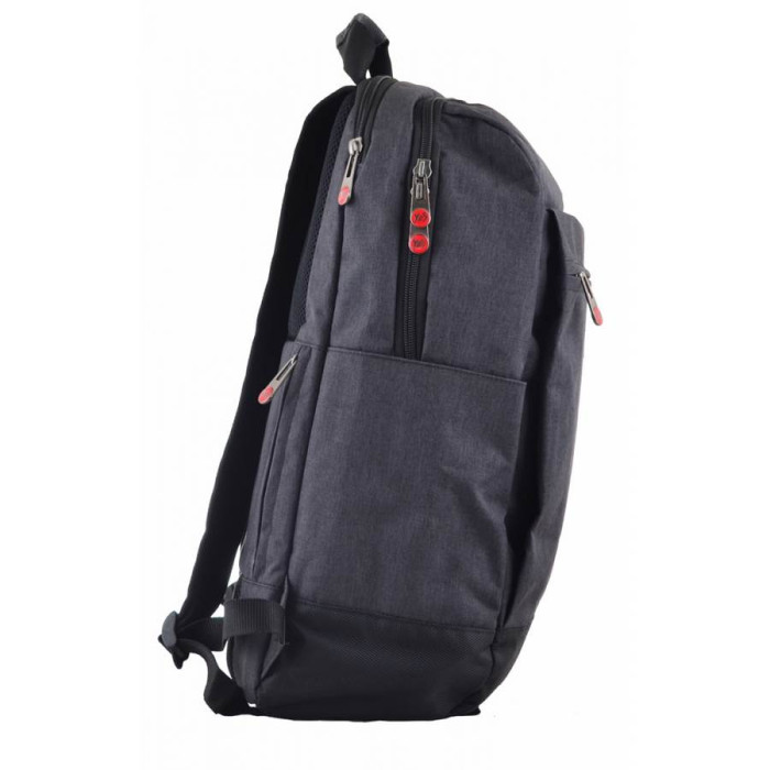 Вместительный рюкзак на 2 отделения. На передней панели - карман на молнии. Боковые карманы - для воды и других мелочей. USB-выход. Наплечные лямки с дышащей сеткой «Air Mesh». Основной материал: полиэстер. Дополнительно: водоотталкивающий, отделение для лэптопа, органайзера, телефона. Габариты: 31х46х16 см. Объем: 23 литра. Вес: 900 г.